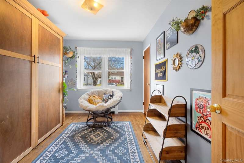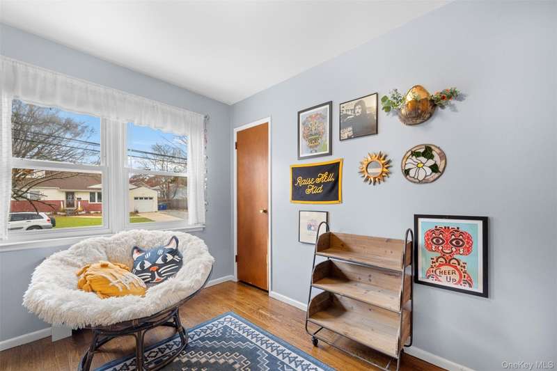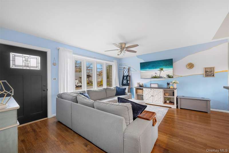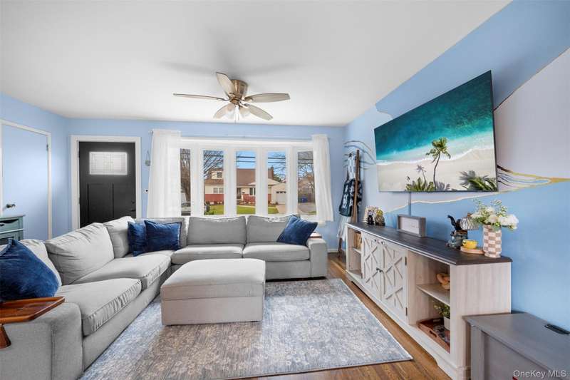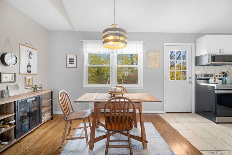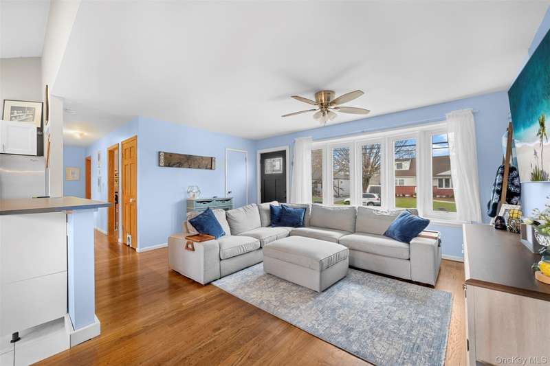 Charming 3-bedroom, 1-bath home featuring an open floor plan with the living room, dining room, and kitchen flowing seamlessly together. The kitchen offers white cabinetry, a center island, newer appliances, and direct access to the backyard, while the dining area includes windows overlooking the yard. The light-filled living room showcases a new bow window with views of the front lawn. The updated full bath serves all three bedrooms, including a nicely sized primary bedroom with a generous closet. Two additional guest rooms each offer ample closet space. Situated on a great flat property, this home provides plenty of outdoor space for play, gardening, or entertaining. This home is fully move-in ready, thoughtfully updated (including new vinyl siding), and beautifully maintained-simply unpack and enjoy.