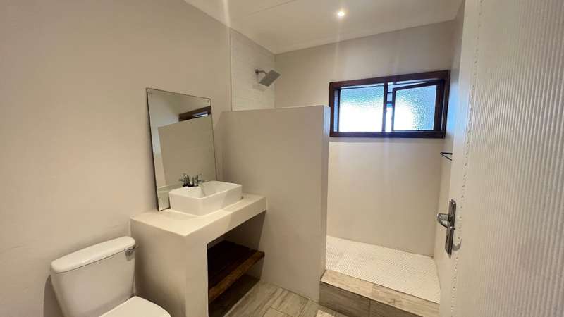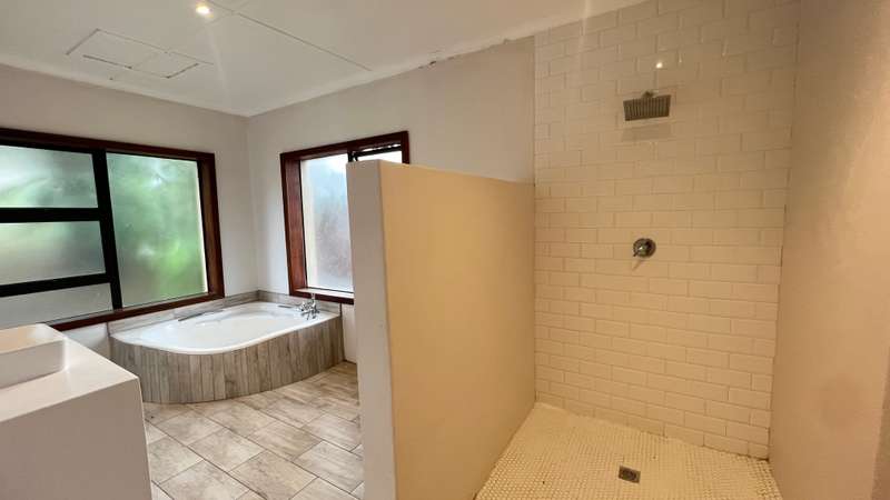 Modern open plan kitchen that connects well with all the entertainment areas towards the lounge, swimming pool and also to the second lounge and wooden deck with beautiful forest and sea views. Also on this level is the 4 bedrooms and 3 bathrooms with the large main and guest bedrooms with en-suit bathrooms. The main bedroom has a kitchenette and extra entrance to rent out or to be used as the perfect guest bedroom. Downstairs is the 2-bedroom flatlet with kitchen, bathroom and living area. The 2 garages have a spacious store room inside and there is also covered parking space for extra vehicles or a boat. Perfect B&B opportunity or for a good rental income.