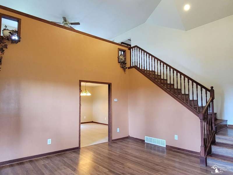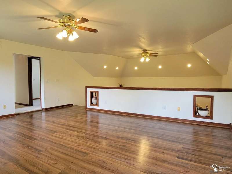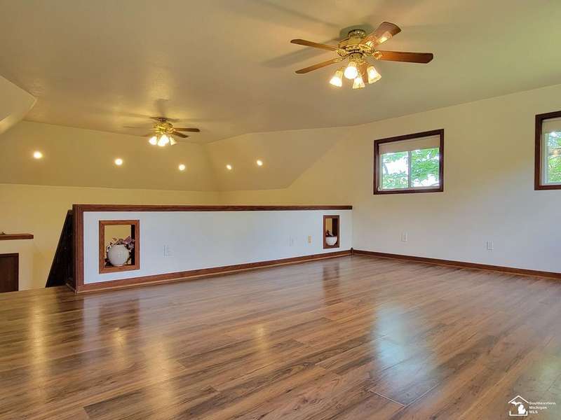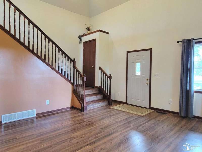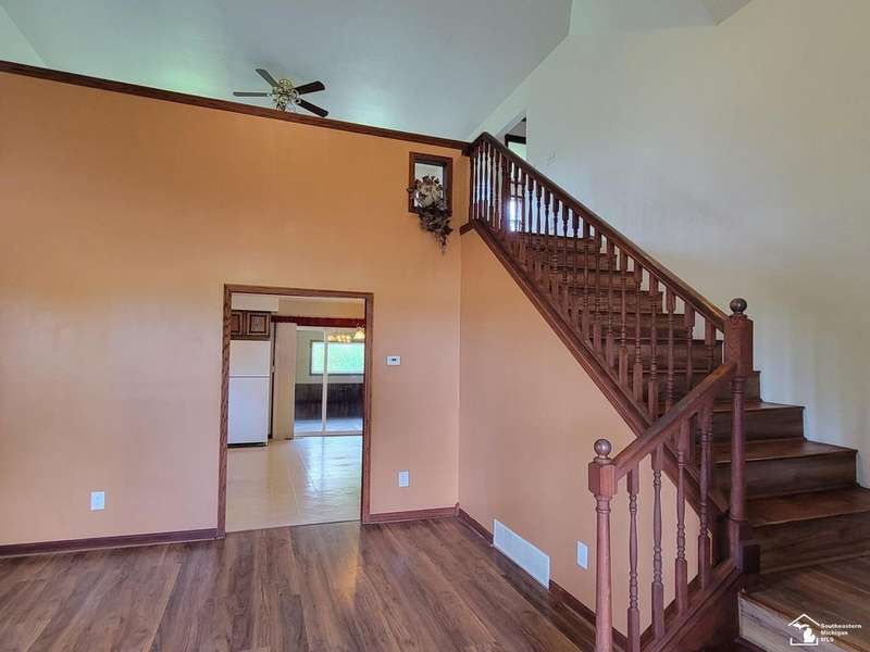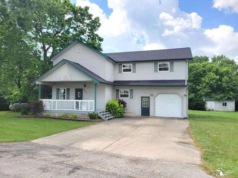 NEW ROOF was just installed in July 2025! Nestled in a Peaceful Country Setting you'll find this Spacious 2-Story Home situated on nearly 3/4 of an acre! Outside, you'll appreciate the Oversized Back Yard, Large Shed suitable for Storage or a Possible Workshop & a Delightful Covered Front Porch. Inside, the 2 Story Living Room boasts Soaring Ceilings & Recessed lighting. The Spacious Eat-in Kitchen offers Loads of Cabinets and Lots of Counter Space. The Dining Area leads to an Enclosed Back Porch perfect for Indoor/Outdoor Grilling & Relaxing. The Main Floor also Features a Full Bathroom and a Roomy Laundry Area. The Finished Garage has High Ceilings, a Workbench and Plenty of Space for Storage or Hobbies. Upstairs, a HUGE Loft Overlooks the Living Room and offers Potential for a 3rd Bedroom or Extra Living Space, while the Primary Suite includes Direct Access to a Full Bathroom and a Private Balcony with Views of the Backyard. A Second Bedroom is also located on the Upper Level. The Lower Level includes a Finished Room that could serve as an Additional Bedroom or Office, along with an Unfinished Area where the homes utilities are housed. With Quiet Surroundings and Flexible Living Spaces, this Home Combines the Best of Country Charm and Modern Comfort! Schedule Your Private Showing TODAY!
