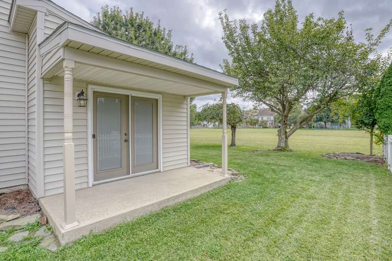 Welcome to this 1 owner twin in the Millcreek neighborhood. This home has been lovingly cared for. When you walk in to the foyer you will find a coat closet, half bath and door to the laundry room where you can access the one car garage. As you go into this home you will find an open floor plan which is great for entertaining. The kitchen has a generous amount of counter space with an over hang for the ability to put stools. All appliances in the kitchen are staying including a brand new stove (9/2025). The breakfast area is open to the kitchen and the family room with fireplace. Beyond those rooms it opens to what the seller utilized as a dining room and living room with double doors leading to a small side porch for a couple chairs to be able to sit and enjoy a cup of coffee. Upstairs you will find 3 bedrooms and 2 full baths.