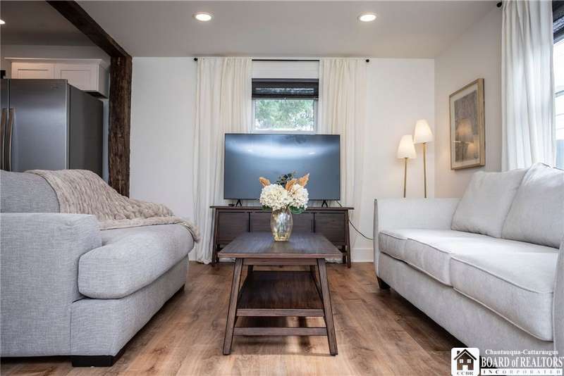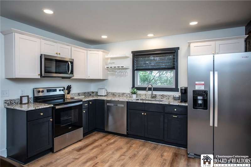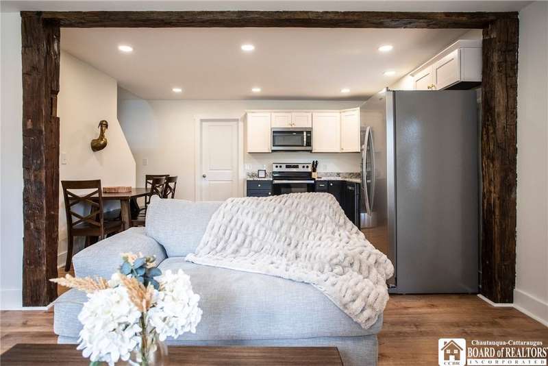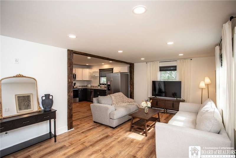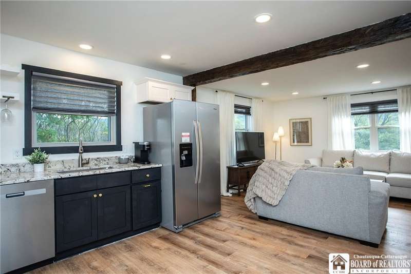 Just minutes from the heart of Ellicottville, this fully renovated 4-bedroom, 2-bath Cape Cod offers upscale comfort on 2 scenic acres with breathtaking mountain views and a brand-new fence added May 2025. Inside, enjoy a seamless blend of modern finishes and classic charm? refinished hardwood and life-proof vinyl floors, a sleek open-concept kitchen with stainless appliances, granite counters and a mudroom/laundry area. Every detail has been thoughtfully upgraded, from the newer furnace and central A/C to windows, doors, plumbing, and electric. The full walkout basement with fresh concrete offers exciting expansion potential. Whether you're entertaining on the spacious deck or relaxing by the fire pit under the stars, this turn-key retreat delivers luxury and privacy whether it's for your full-time residence, a 4 season vacation home or short-term rental.