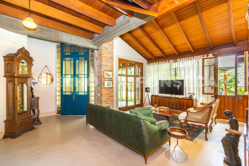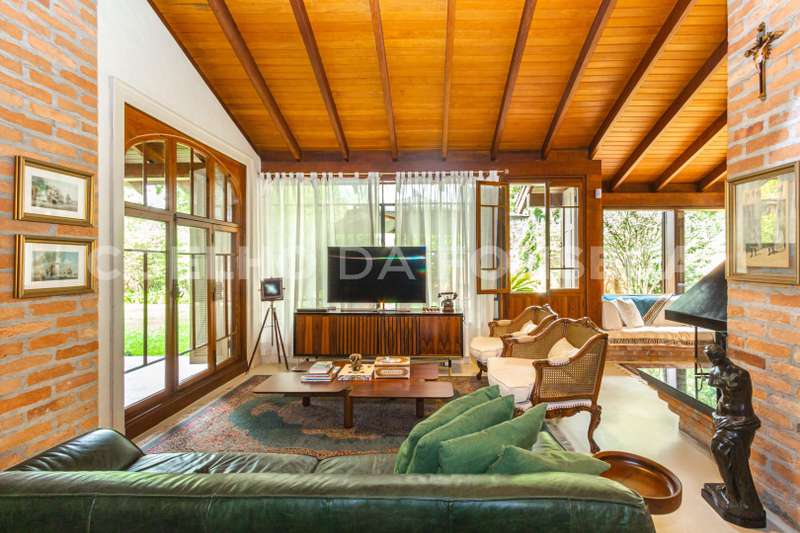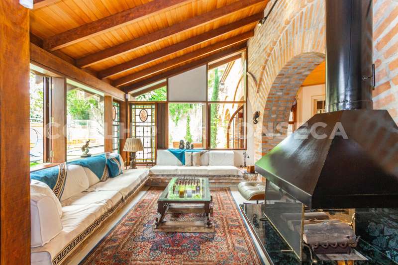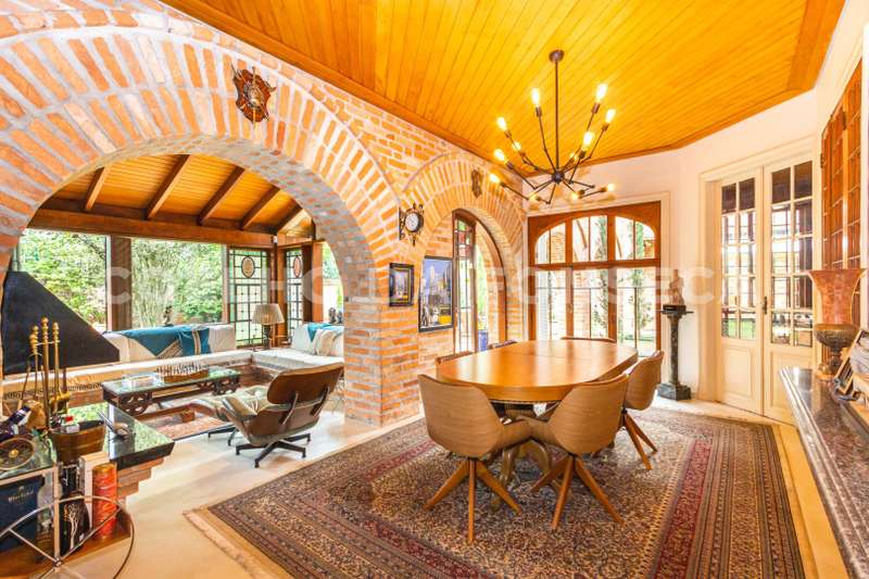 Casa próxima a escolas renomadas na região do Alto da Boa Vista. Inspirado no estilo inglês, com traços arquitetônicos de Toscana e Bavária, o imóvel conta com belo jardim, plantas, grandes pinheiros, kaisukas e jabuticabeira. Área de lazer totalmente reformada, com ampla piscina, deck em madeira, sauna a vapor de vidro, ofurô e lareira. Com 3 andares e ambientes espaçosos, dispõe de escada em madeira, pé-direito alto, vitrais e móveis com design europeu, dependências de serviço, edícula para escritório, banheiro e mais um quarto. Possui sistema de segurança, câmeras, alarme completo, guarita e passa volumes blindados, além de sistema de monitoramento de câmeras nas ruas da região.