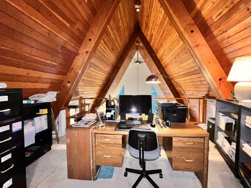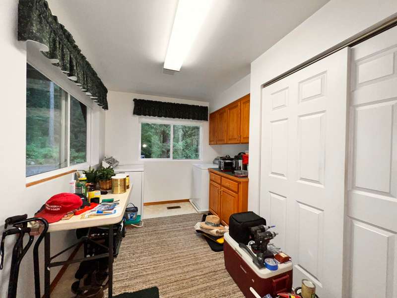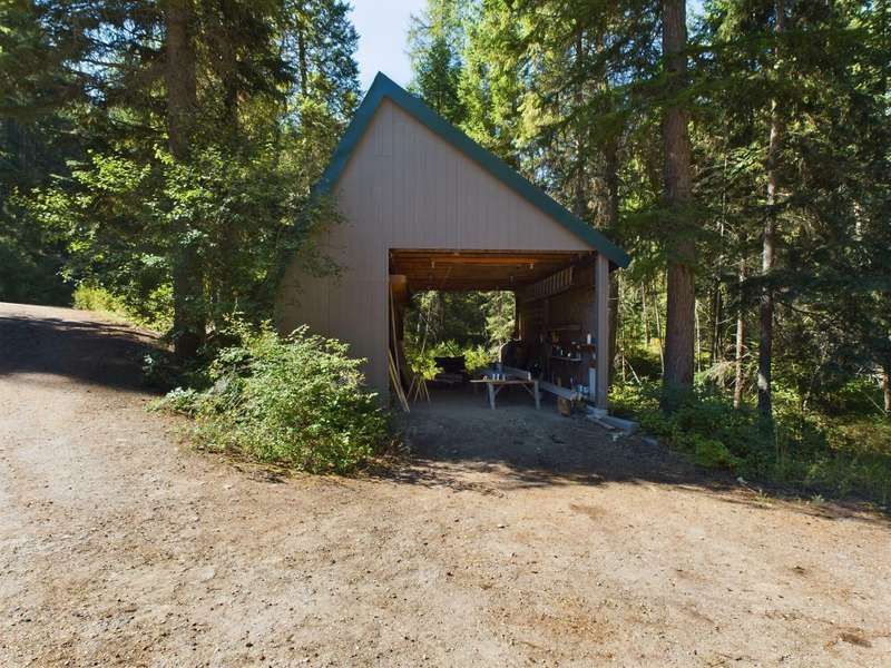 One of the most outstanding, well built, well thought out custom homes you'll find. It's both meticulously done & maintained. 3 story great room with a wall of windows that is the focal point. Large modified A frame style with 3 floors above grade and a full basement that has a 2-car garage & large shop area with high ceilings. Light bright kitchen with considerable cabinet & counter space. Fire suppression system on all floors as well as fire hydrants throughout the property. Multiple heat sources w/propane forced air furnaces as well as wood forced air furnace & wood stove. Beautiful greenhouse w/large fenced garden. Wood shed, 2nd storage shed w/lean-tos on both sides. Year around creek & heavily timbered property.