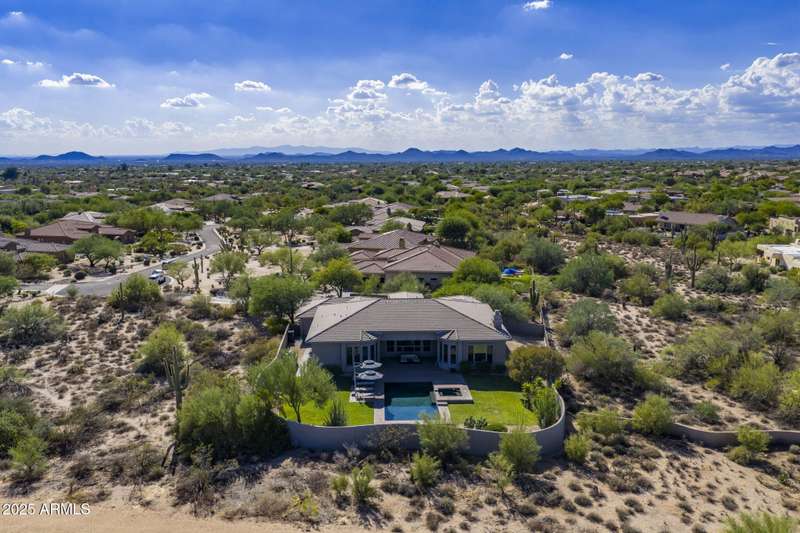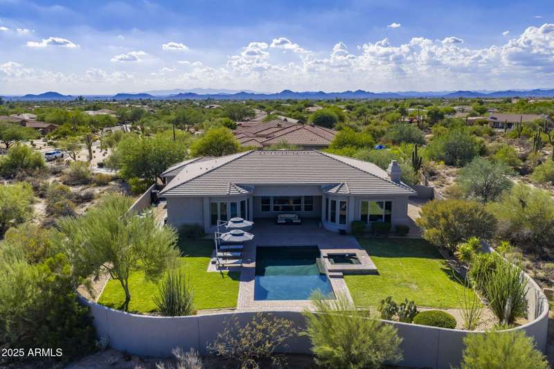 *REDUCED. BACKYARD PLANS TO BE TRANSFERRED* This estate offers privacy, space, and modern amenities in one of North Scottsdale's most desirable locations. Set on 1.5 acres with a long private driveway, this 5-bedroom, 3.5-bathroom home combines comfort with functionality. Inside, the flexible floor plan is designed to adapt to your lifestyle, featuring open living spaces, and full home security and sound system. Large primary suite includes an oversized walk-in closet! The gourmet kitchen flows seamlessly into the living and dining areas, perfect for entertaining or casual nightly gatherings. The 4-car garage, equipped with a mini split system and EV chargers. Resort style backyard with a pool, hot tub, lush grassy area, all framed by stunning views.