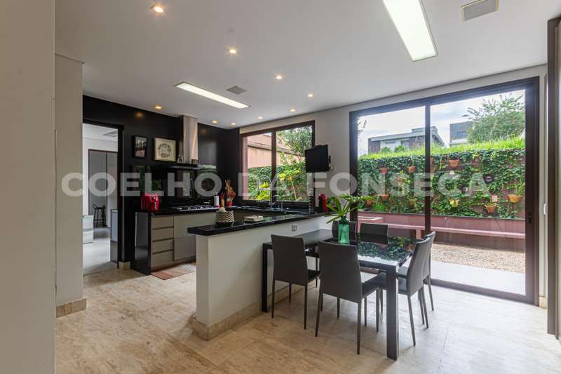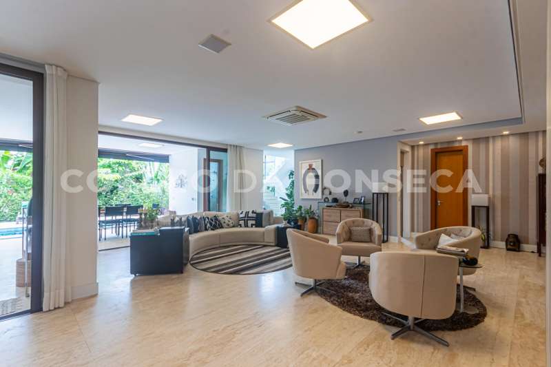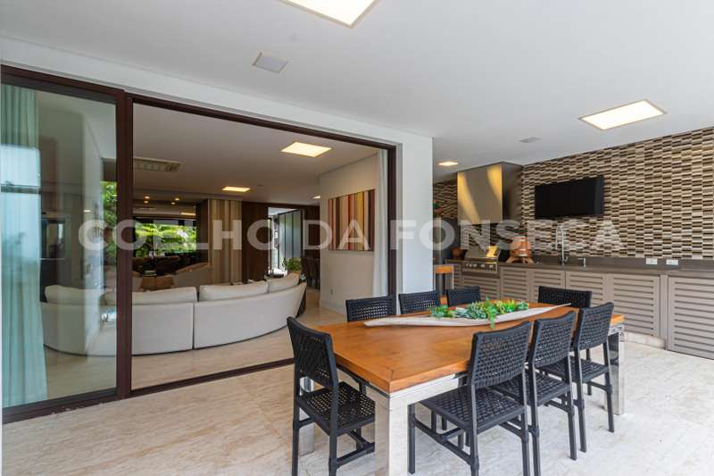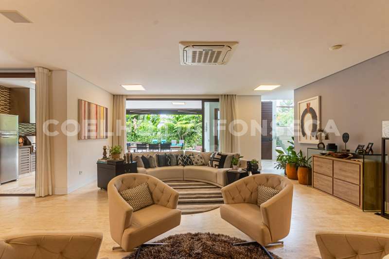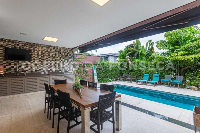 Casa no condomínio TAMBORÉ XI, com 535m² área construída, 5 dormitório(s), 4 suíte(s), 6 vaga(s), 6 banheiro(s), piscina, gerador, escritório, depósito, mobiliado (a), rua sem saída, ar condicionado, dep. de empregados, varanda, elevador, aquecedor solar.