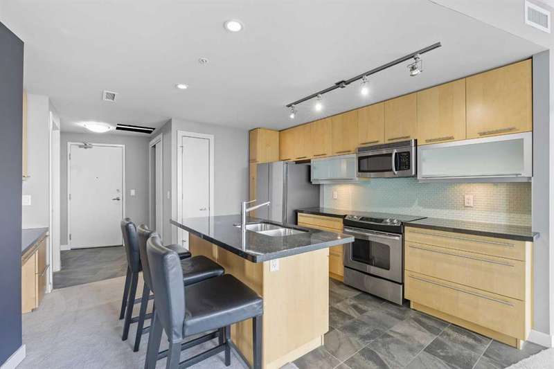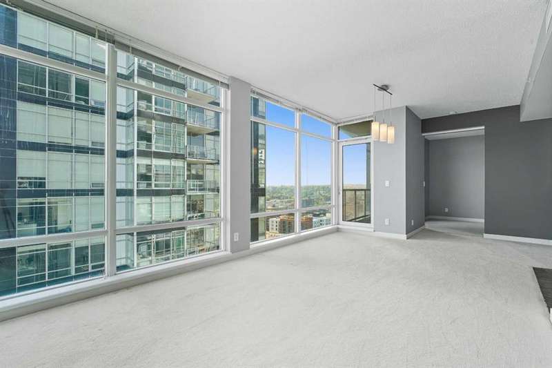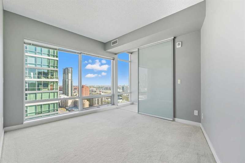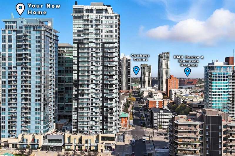 **PRICED TO SELL** Discover elevated urban living in this gorgeous 17th-floor CORNER UNIT in the CONCRETE Union Square building, located in Calgary’s vibrant Beltline. This 2 BED, 2 BATH condo offers a spacious layout with over 900 SQ FT, and with floor-to-ceiling windows showcasing STUNNING CITY VIEWS. The open-concept living and dining area is flooded with natural light and features a wall-mounted electric fireplace, adding warmth and style and Hunter Douglas blinds throughout. The modern kitchen features stainless steel appliances and ample storage, ready for all your cooking needs. The generously sized primary bedroom boasts a large ensuite bathroom, while the second bedroom and full bathroom provide privacy and convenience, ideal for guests or a home office. Additional highlights include IN-SUITE LAUNDRY, a private balcony, heated and titled UNDERGROUND PARKING, and additional dedicated STORAGE locker. Just a few short blocks from Calgary’s downtown core, this unit places you steps from some of the city’s best restaurants, cafes, and amenities. Enjoy easy access to green spaces, bike paths, convenient routes in and out of the city, and nearby landmarks including Stampede Park, the Saddledome, and the LRT—perfectly blending comfort, style, and urban convenience. You don’t want to miss this one!