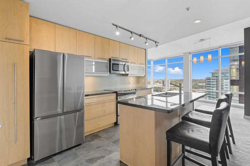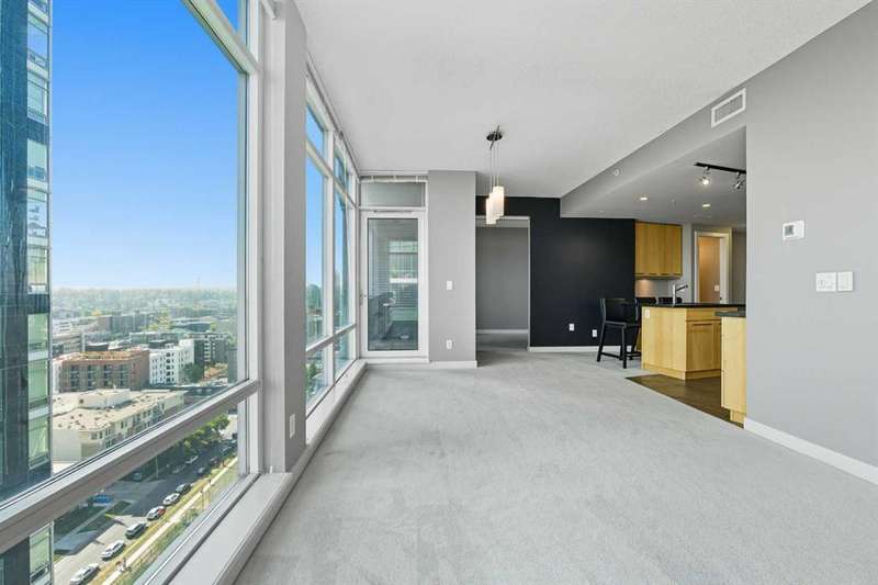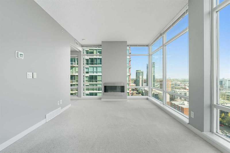 **PRICED TO SELL** Discover elevated urban living in this gorgeous 17th-floor CORNER UNIT in the CONCRETE Union Square building, located in Calgary’s vibrant Beltline. This 2 BED, 2 BATH condo offers a spacious layout with over 900 SQ FT, and with floor-to-ceiling windows showcasing STUNNING CITY VIEWS. The open-concept living and dining area is flooded with natural light and features a wall-mounted electric fireplace, adding warmth and style and Hunter Douglas blinds throughout. The modern kitchen features stainless steel appliances and ample storage, ready for all your cooking needs. The generously sized primary bedroom boasts a large ensuite bathroom, while the second bedroom and full bathroom provide privacy and convenience, ideal for guests or a home office. Additional highlights include IN-SUITE LAUNDRY, a private balcony, heated and titled UNDERGROUND PARKING, and additional dedicated STORAGE locker. Just a few short blocks from Calgary’s downtown core, this unit places you steps from some of the city’s best restaurants, cafes, and amenities. Enjoy easy access to green spaces, bike paths, convenient routes in and out of the city, and nearby landmarks including Stampede Park, the Saddledome, and the LRT—perfectly blending comfort, style, and urban convenience. You don’t want to miss this one!