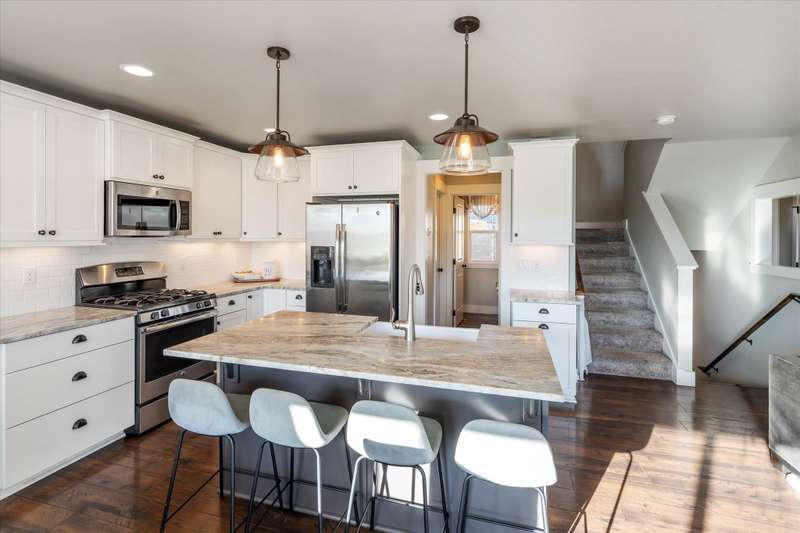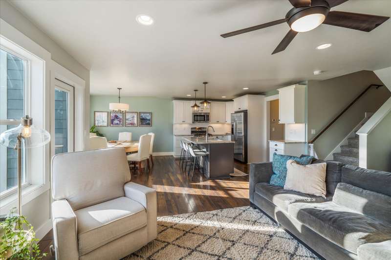 A seamless blend of modern craftsman style and a sought after location come together for this perfect blend of cozy and spacious in this generous 5 bedroom- 4 bath home. This wonderful home features three floors of well laid out living space. The main floor boasts a lovely, light and airy kitchen with granite countertops that flows naturally into the dining area and living room with appreciable size windows and and inviting gas fireplace. The second level is home to the primary suite, two bedrooms and two full baths. Head downstairs and you'll enter the comfy family/TV room with full walk out to a patio area with a hot tub, along with two more bedrooms and a full bath. One of the really great features of this home is the arranging, planning and creating of the exterior space. Multi level decks can be accessed from the lower level and the main level. The yard is fenced for privacy on an oversized lot in a quiet neighborhood.