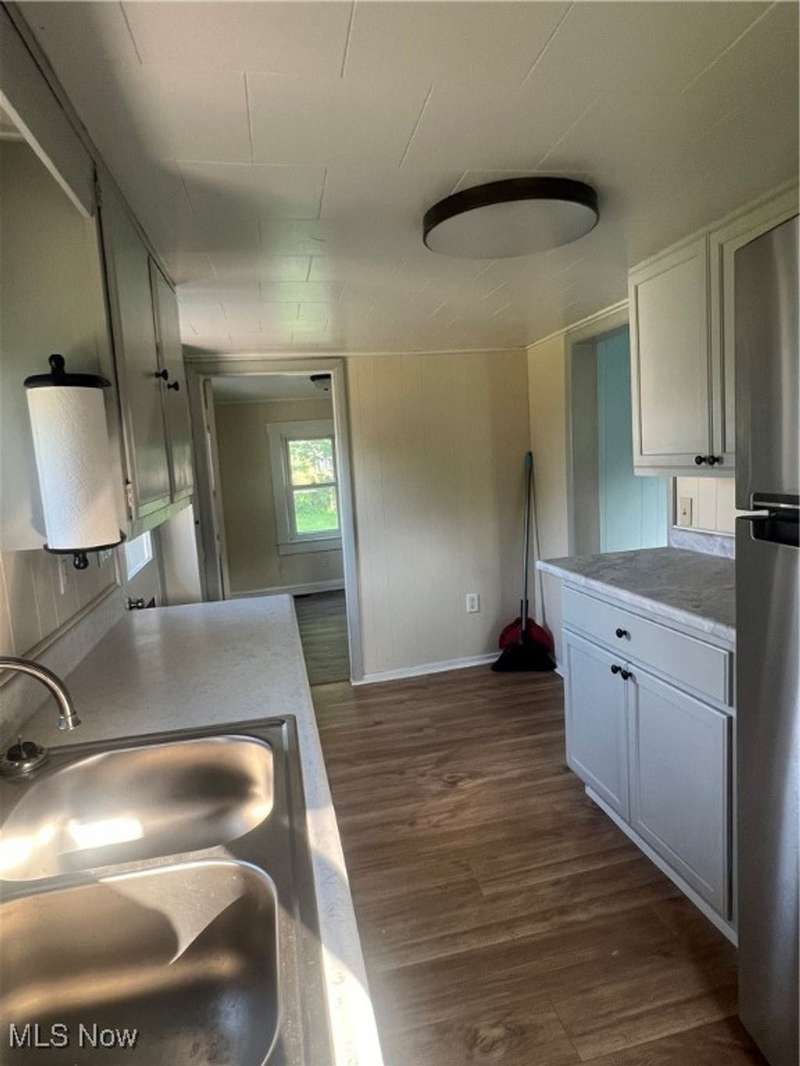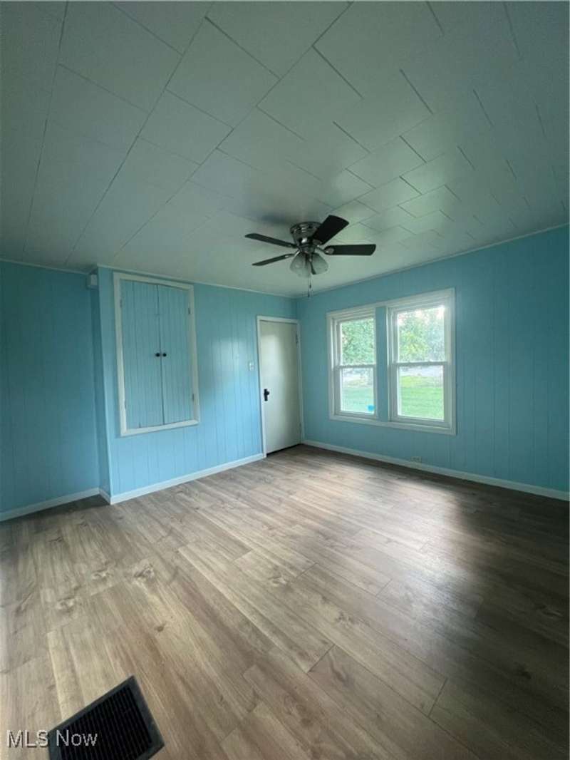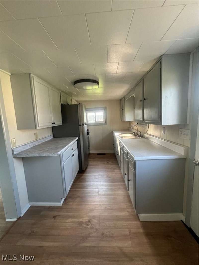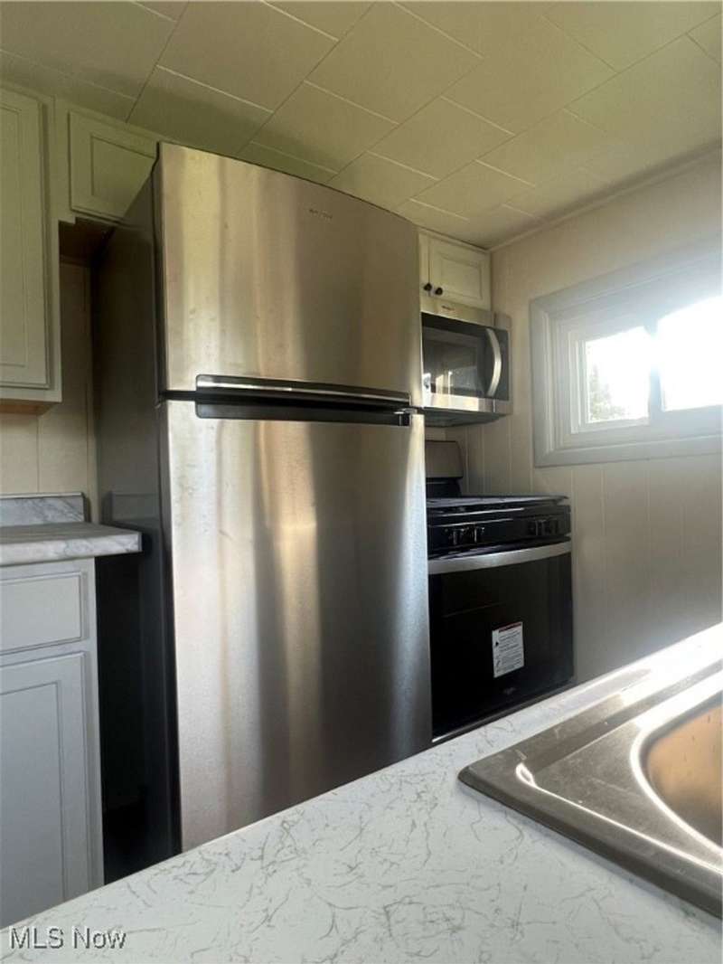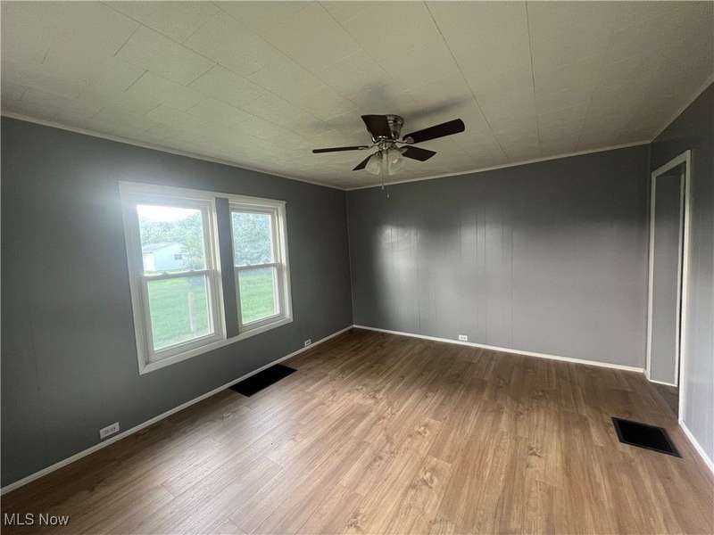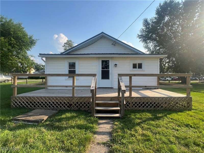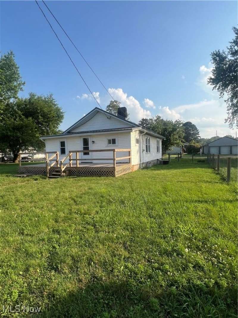 Newly renovated single-story home featuring 3 bedrooms and 1 full bath. Unfinished basement includes washer and dryer hook-ups. Kitchen equipped with new refrigerator, gas range, and microwave. Additional features include a newer metal roof, detached one car garage, rear parking, and a fenced yard. This home sits on 2 parcels, offering extra outdoor space. Move in ready.
