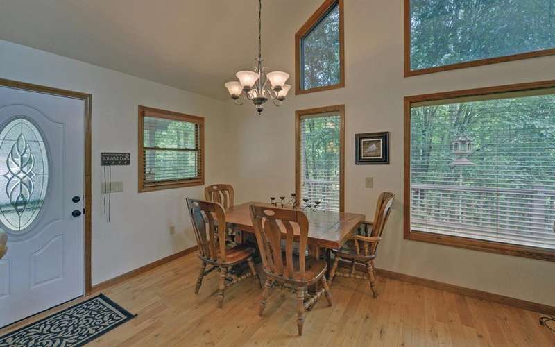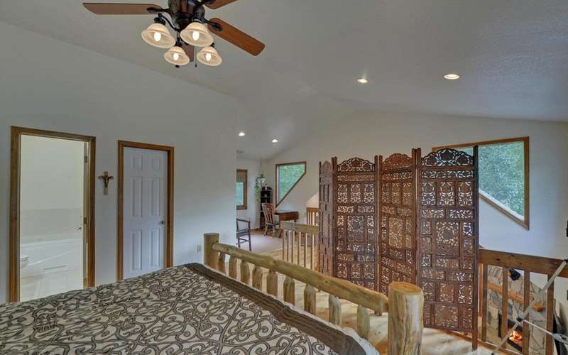 Escape the chaos and come home to this 2-bed, 3-bath mountain chalet, where warm wood interiors, soaring ceilings, and wraparound decks create the ideal blend of comfort and escape. The vaulted great room anchors the home with natural light and a striking fireplace, while the kitchen's breakfast bar invites easy mornings and relaxed entertaining. Two main-level bedrooms open directly onto the expansive deck, offering instant access to the outdoors. Upstairs, the loft suite with full bath offers a spacious retreat that could easily serve as the primary bedroom or a welcoming guest haven. A fully finished basement adds valuable flex space for hobbies, hosting, or downtime. Set on .86 acres with a wood-sided exterior, outbuilding storage, and a deck that wraps around three sides, this property is designed for real mountain living. Just minutes from Murphy's shops, restaurants, rivers, trails, and more, it's the kind of home that solves the question of where to recharge—without compromise.