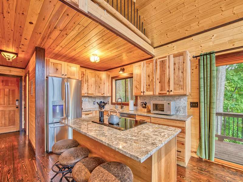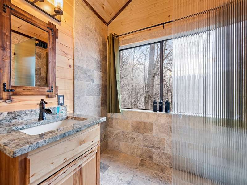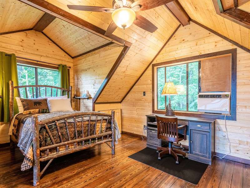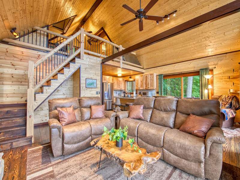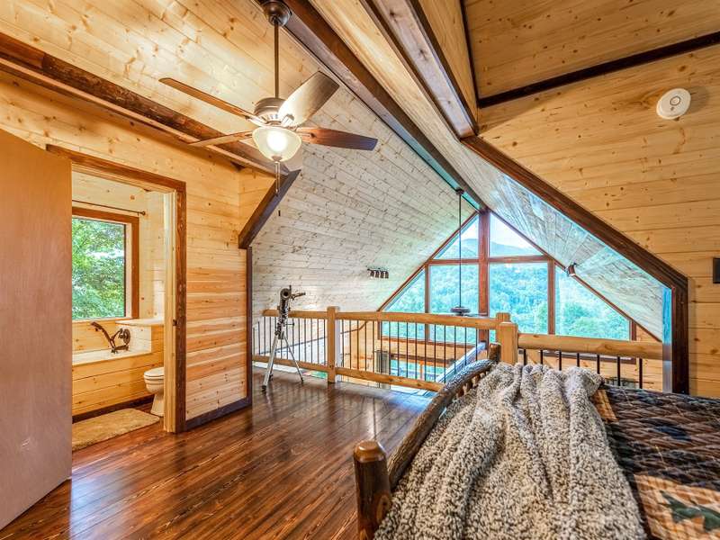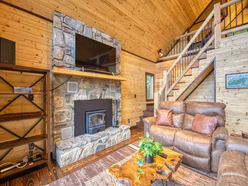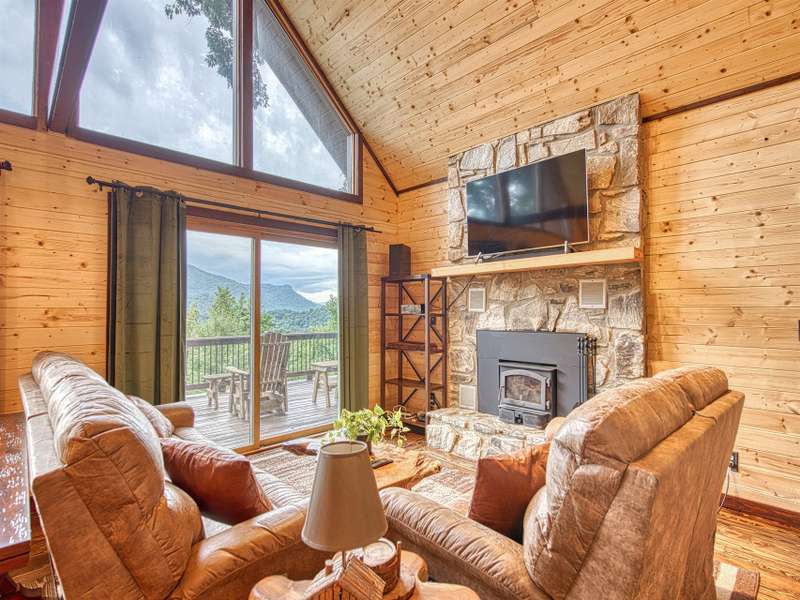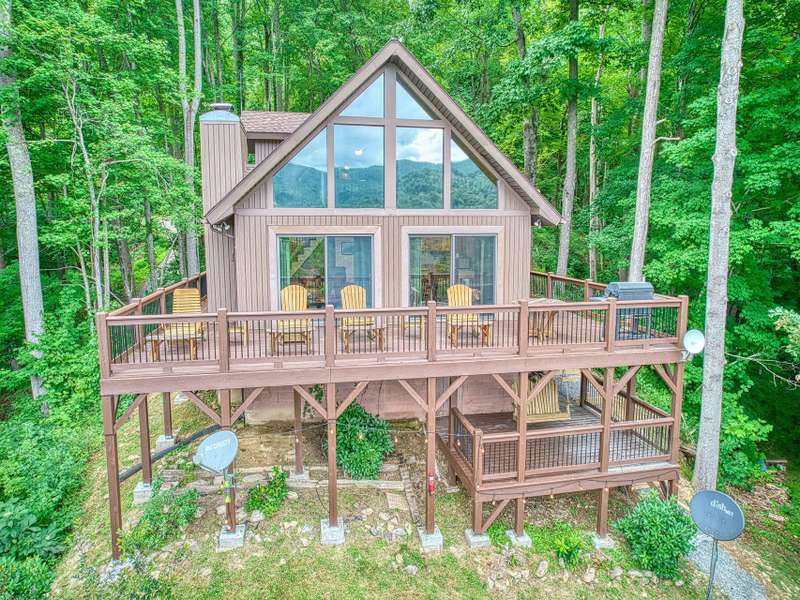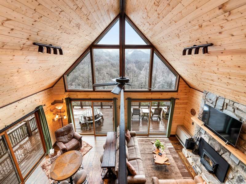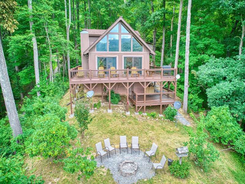 Make this dreamy A-frame cabin your own private mountain retreat, a money-making Airbnb, or your full-time escape into the peaceful beauty of the Blue Ridge! Take in incredible year-round mountain views from inside or out thanks to the massive windows that flood the space with natural light and bring the outdoors in. Enjoy cool evenings by the wood-burning fireplace, stargaze from the wraparound deck, or gather around the fire pit for mountain memories. Inside, you'll love the modern touches including granite countertops throughout, stainless steel appliances, and a soaker tub in the open loft-style primary suite. A large storage shed gives you plenty of space for gear and supplies. Whether you're looking for a getaway that pays for itself or a peaceful place to call home, this cabin is mountain living at its best.