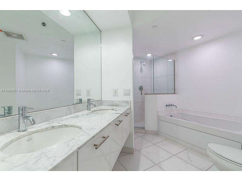 SOPHISTICATED AND CONTEMPORARY DEFINE THIS AMPLE AND LUMINOUS UNIT LOCATED IN 500 BRICKELL. A SOARING 43-STORY LUXURY TOWER IN THE CENTER OF IT ALL. THIS ENTIRE UNFURNISHED 2 BED/2 BATH UNIT FEATURES GRANITE COUNTERTOP KITCHEN ISLAND, CUSTOM DARK WOOD CABINETRY, AND DELUXE APPLIANCES. UPGRADED AND AMPLE BATHROOMS. EXQUISITE PORCELAIN FLOORS FLOW BEAUTIFULLY THROUGHOUT THE UNIT. BRAND NEW A/C UNIT. VIEWS OF BRICKELL AND THE WATER. INCLUDED: WATER, INTERNET, AND CABLE. WALKING DISTANCE TO BRICKELL CITY CENTER, SHOPPING, AND METRO. AMENITIES: GYM, 2 ENTERTAINMENT ROOMS, SUNSET ROOM/BAR, 2 POOLS, AND 24-HOUR SECURITY. MAINTENANCE $883 PLUS MASTER $756 (ONLY $1.37/SF). INVESTORS: JUST RENTED FROM 01/06/25 - 01/05/26 @$4,200/MONTH.