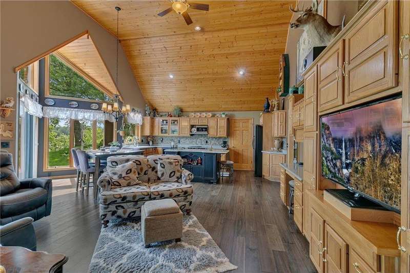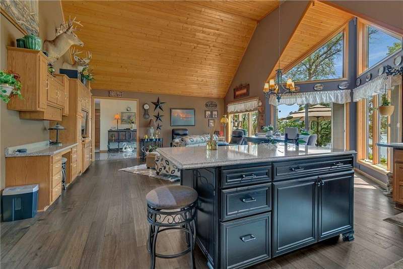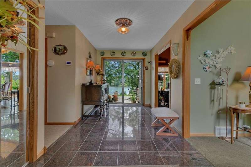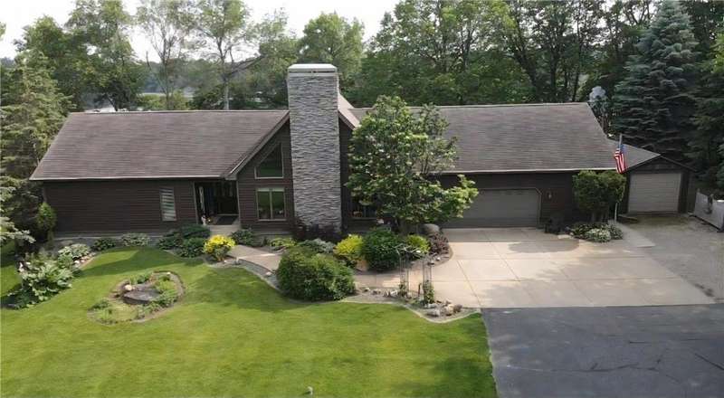 Nestled on .86 acres of mature trees and vibrant flower gardens, this impeccably maintained Spring Lake home offers 174 feet of private shoreline and effortless one-level living. You'll be greeted by a wall of lake-view windows framing your great room, formal living area, and dining room, perfect for entertaining or peaceful mornings with coffee in hand. The spacious kitchen overlooks sparkling waters and steps out to a large paver patio, where lakeside sunsets become your evening ritual. Retreat to the main-level primary suite, complete with generous closet space and en-suite bath, while a second bedroom on this floor is ideal for guests or a home office. Downstairs, an epoxy-coated basement welcomes family movie nights in the oversized recreation room, two additional bedrooms and a third full bath. Storage is never an issue with a heated, insulated 2-plus car garage, detached one-car garage and garden shed. A sturdy steel stairway leads you straight to the water for boating, fishing or lakeside lounging. Enjoy maintenance free seamless steel siding, along with tons of mature perennial gardens throughout. Experience unique design, stunning views and turnkey lake living-all in one exceptional property. Schedule your private tour today and step into your dream retreat!
