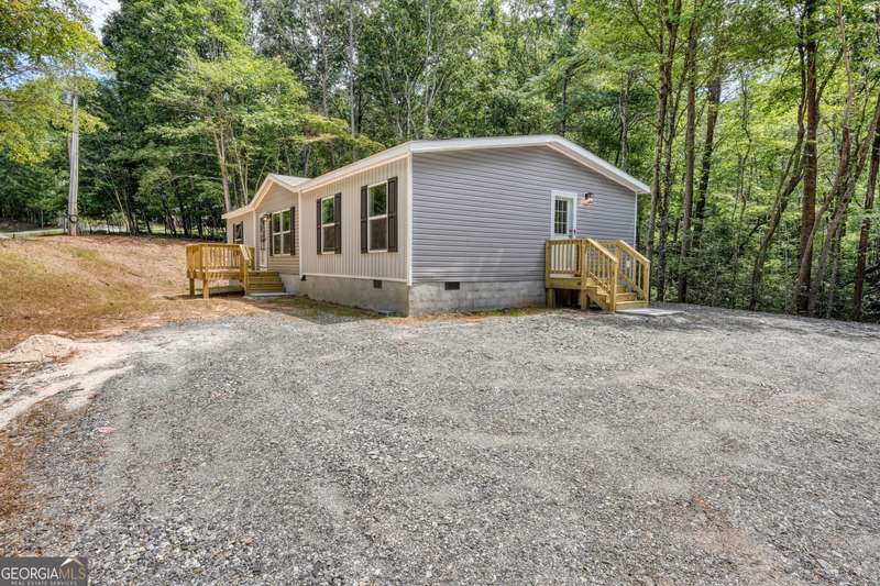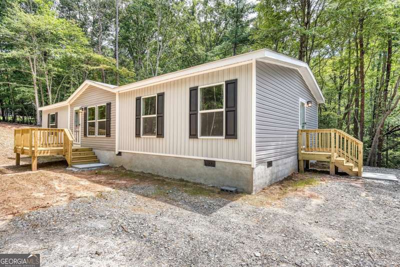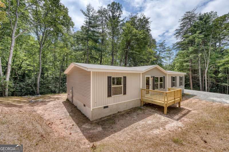3BR/2BA Modern Mountain Living - Easy Access, Family-Friendly & Move-In Ready! Discover serene mountain living 5-miles from downtown Blairsville in this brand-new, well-built Clayton Smart Home, perfectly situated on a peaceful level lot. Thoughtfully designed with modern convenience and style, this 3-bedroom, 2-bath retreat features a split floor plan for privacy, vaulted ceilings for a spacious feel, Turnkey Ready, and multiple decks to enjoy the fresh North Georgia Mountain air. The open-concept layout seamlessly connects the living, dining, and kitchen areas-ideal for gatherings or everyday living. The kitchen boasts ample cabinetry, multi-functional storage, and efficient stainless steel appliances, while modern finishes throughout make this home move-in ready. Built on a permanent foundation, it offers financial stability and peace of mind for homeowners. Enjoy cutting-edge Smart Home technology including an Ecobee smart thermostat, smart water heater, and energy-efficient features, complemented by high-speed fiber-optic internet for modern connectivity. With three exit doors, side-easy access with entrance parking, and county water, this home combines convenience, comfort, and privacy. Perfectly located nearby Hospital, highly-top rated Union County Schools, shopping and dining in Blairsville, mountain retreat is ready to make your dream lifestyle a reality. Ready for occupancy. Your family friendly modern mountain escape awaits!