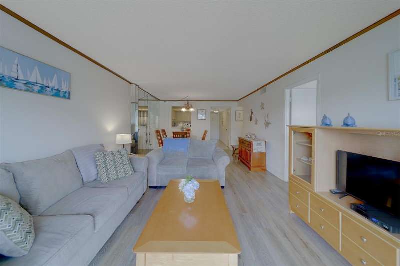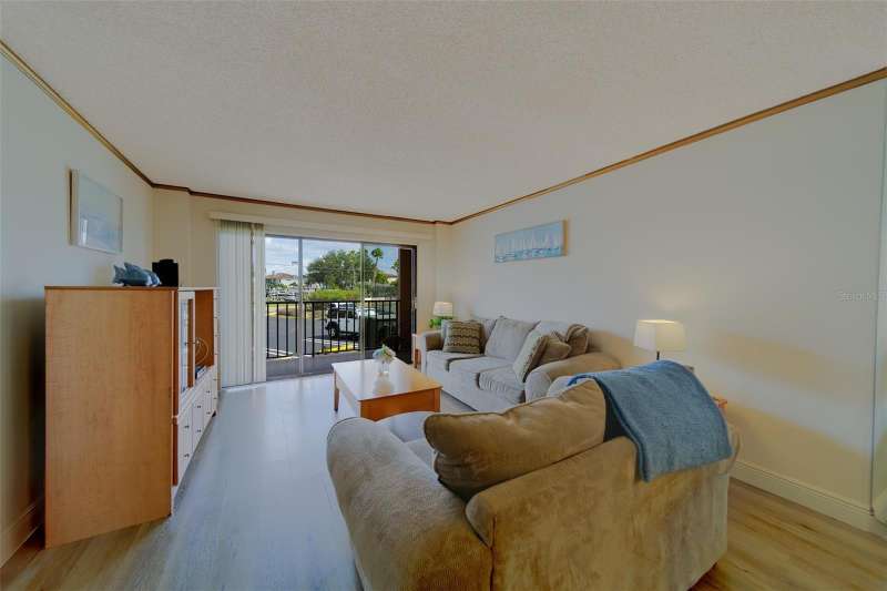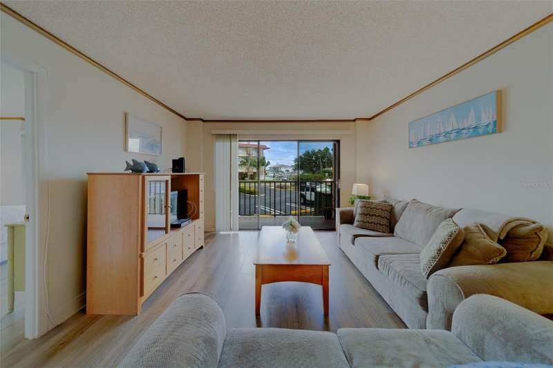 AVAILABLE NOW! Terrific two-bedroom, two full baths, first floor condo on desirable Island Estates. New flooring, refrigerator, dishwasher, fully furnished. Enjoy quiet time and a glass of wine at sunset on your private balcony. Each bedroom and living room all have their own oversized balcony to enjoy. Walk across the street to Island Way Grill for dinner or bike ride to Clearwater's #1 Beach! If you choose to stay back, enjoy some down time just throwing that fishing line in from this waterfront property or just relax and observe the dolphins on our intracoastal waterway. This area has so much to available, just by walking to all services, restaurants, Publix, Post Office, Nail Salon, banks, dry cleaner and so much more. Come stay here at "Champa" Bay!