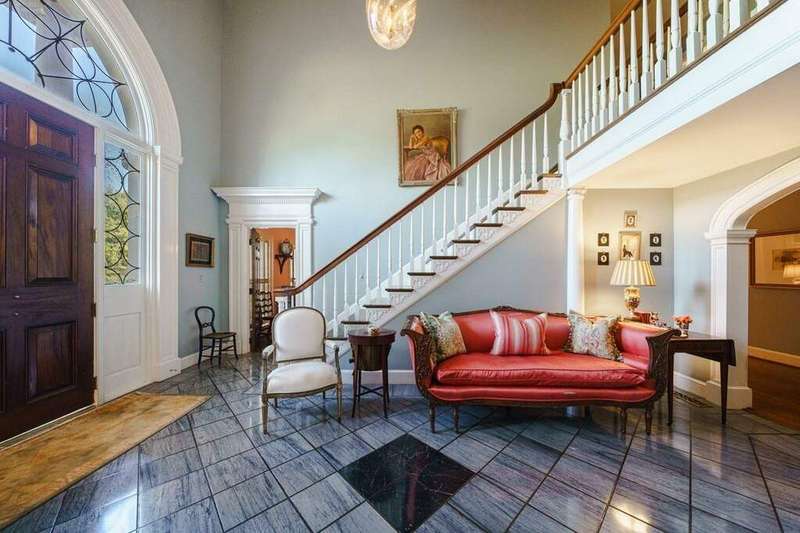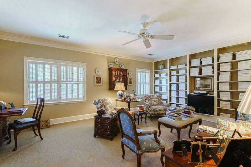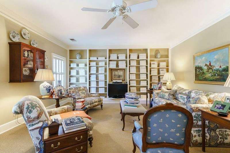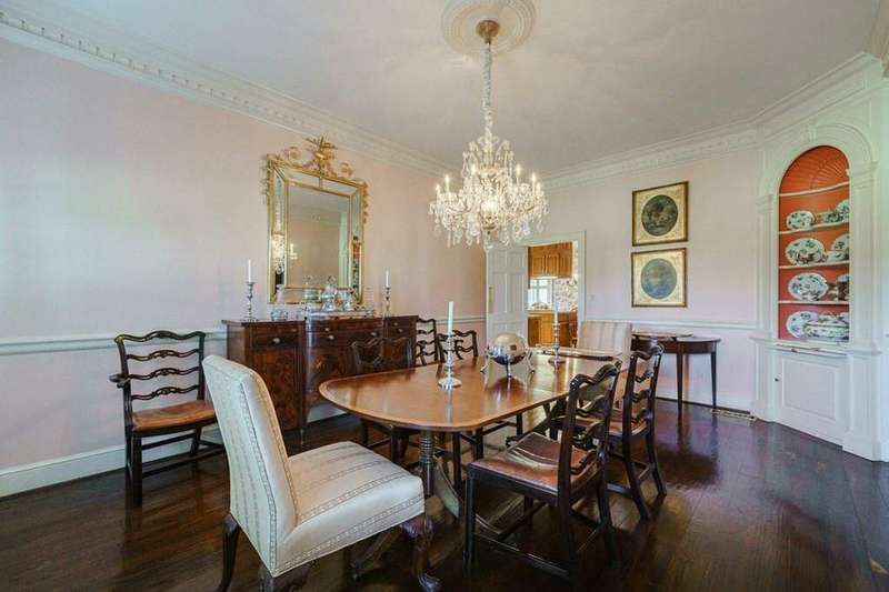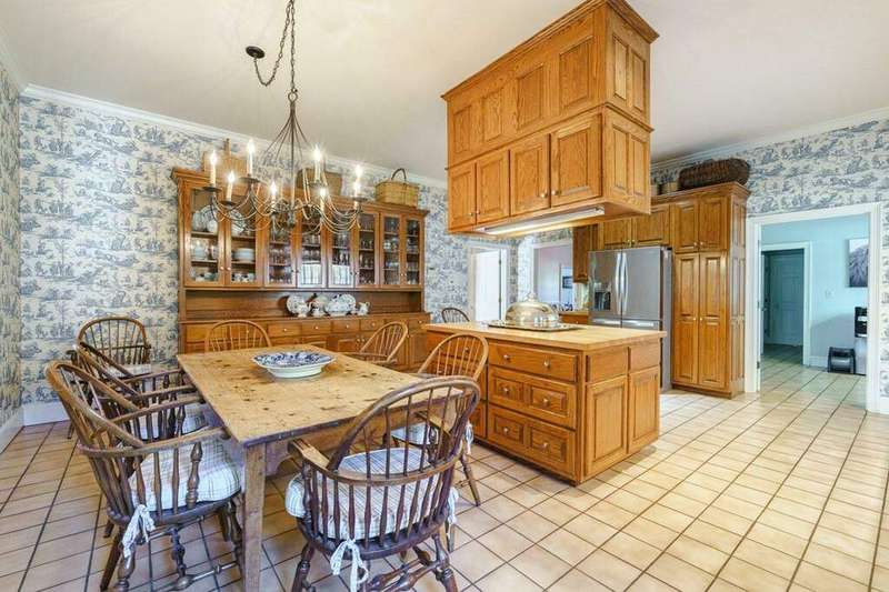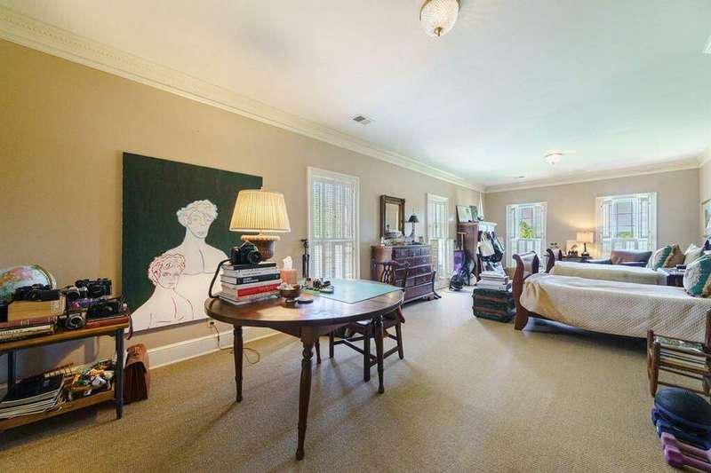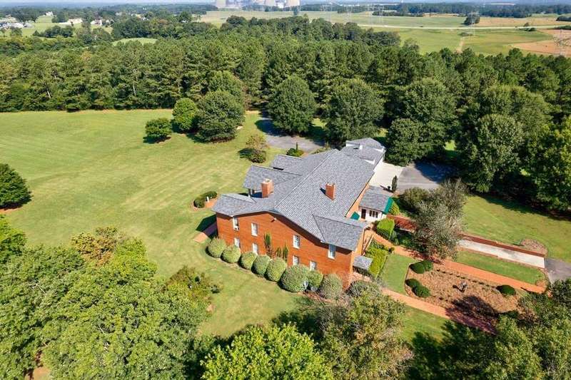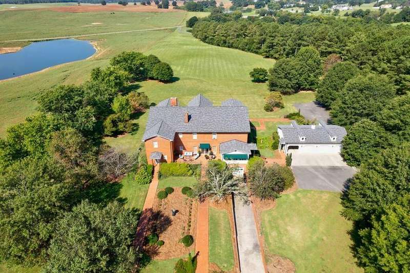 Custom built traditional home surround by 10+/- acres of tranquil land in Taylorsville, Georgia. Note the oversized front porch with beautiful columns leading to the grand entrance foyer with marble flooring and custom staircase. Additionally, the beautiful hardwood flooring and detailed woodwork and molding throughout the main level. Formal living room connects to the library with a double sided fireplace. Cozy library/study is encased in an entire wall of bookcases. Main level also offers a formal dining room, guest suite with full bath and handsome wood paneled den that sits in the back of the house. Light filled kitchen has oversized island, stainless steel appliances, breakfast room with additional flex office/bedroom space with full bath. The main floor also consist of a powder room, sunroom and laundry room. Upper level staircase leads to 4 bedrooms and 3 full baths including oversized primary suite with sitting room and dual baths. Full size unfinished basement with great storage and boat garage. This property is complete with beautifully manicured grounds, stocked lake and 4-car garage, truly a must see! Beautiful, neighboring acreage is also listed for sale on separate 44 +/- acre parcel.