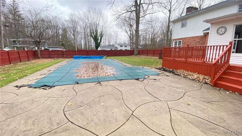 Welcome home to 4486 Shadyridge Drive in beautiful Hamburg just outside the Village Of Hamburg so no Village taxes. This 5 bedroom 2.5 bath colonial sits on a large fenced in oversized lot on neighborhood street that is a giant Cul De Sac so minimal traffic. Let's start in the fully applianced kitchen with island and stools, that opens to the large eating area and formal dining room. Enjoy the extra large living room with a woodburning fireplace to cozy up to. Fantastic family room with wonderful windows that open to the large backyard, great space to watch the football games and the snow fall. Let's head upstairs to the incredible master suite with extra large double closets and easy access to the full bath. Four additional nice size bedrooms with access to the second full bath. The whole house has been recently painted and new carpet installed. Beautiful hardwood floors throughout. Updates include roof, boiler, hwt, light fixtures and much more. Let's head downstairs to the finished basement with 2 large rooms great for office space and a additional family room. This home offers so many options and a terrific floor plan plenty of space for everyone. Attached 2.5 car garage with additional access from the basement. Large deck that overlooks the gorgeous built in pool and patio area. This great home is turn key ready to just move into and enjoy. Open House Sunday 11-1 P.M.