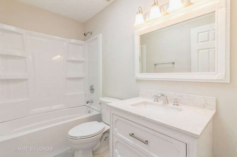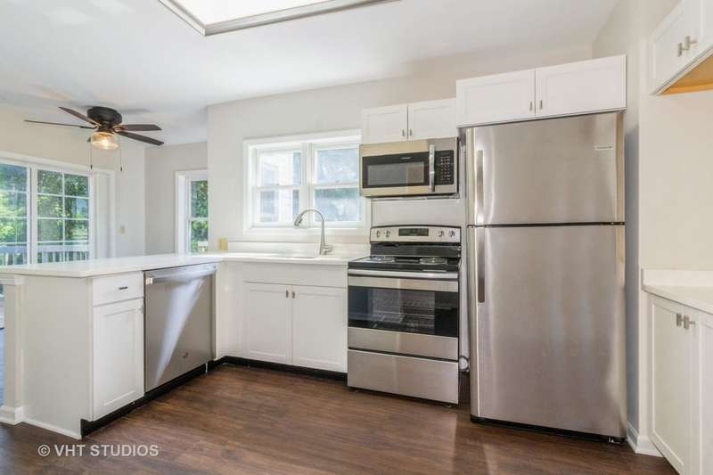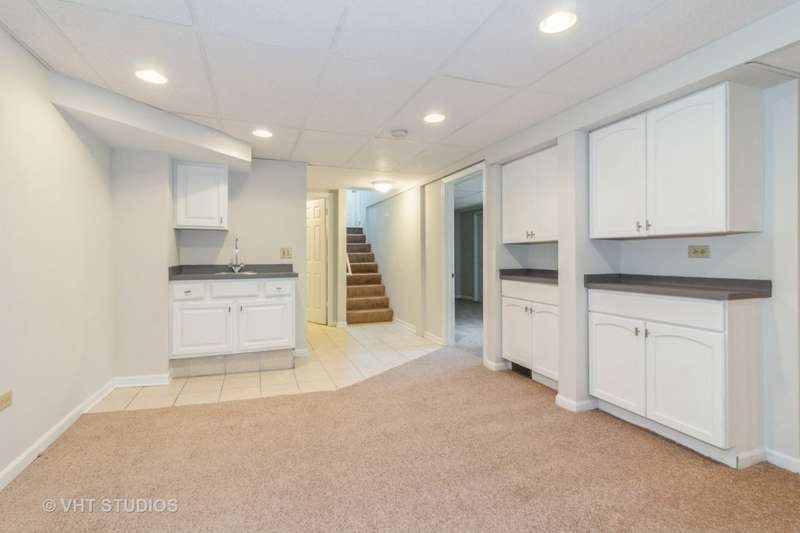 Total Rehab, all three floors! Location, location, location: walk to town & North Central College. Three full bathrooms with updated cabinetry, Corian in the basement vanity top, and quartz in the first- and second-floor bathrooms. A skylight is featured in the upstairs bathroom. New tub and shower in the first & second floor bathrooms. New stainless steel kitchen appliances and quartz top with white-on-white cabinets and trim. The kitchen features ceramic flooring and a generous eat-in area that leads to the backyard and deck. Five bedrooms, three on the second floor, one on the first floor, one in the basement. The basement features a large rec room with new carpet and a wet bar. Formal dining room and a comfortable living room with new carpeting. The first floor also has a multi-purpose bonus room, which can be a den/TV room. Garage 23'x21', newly painted. The yard opens to a large green belt easement to the east side of this beautiful gem of a home. New washer & dryer. New air conditioner installed June 28, 2025. A new 50-gallon hot water heater being installed July 3, 2025. Selling AS-IS.