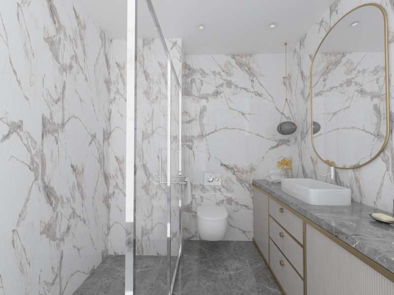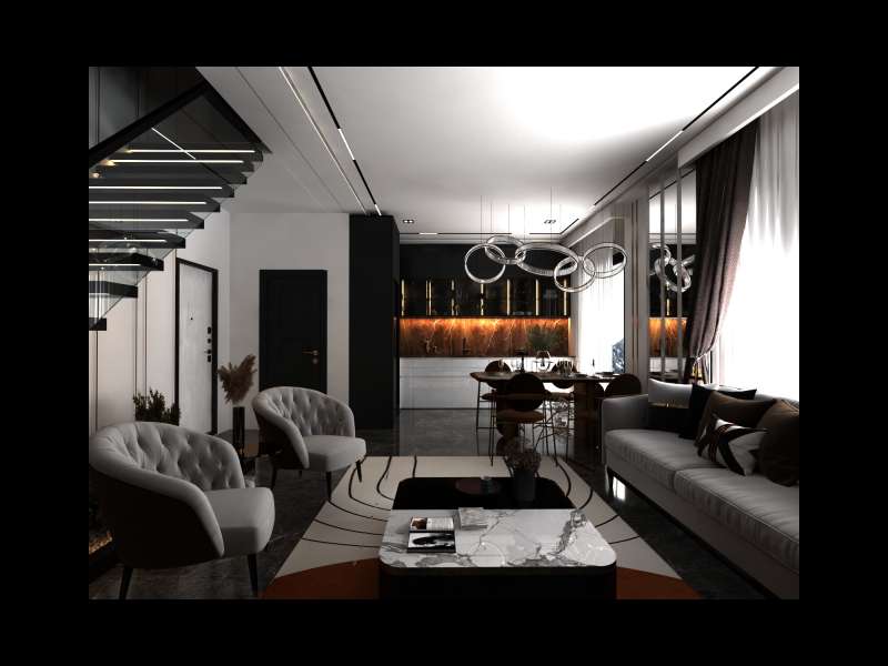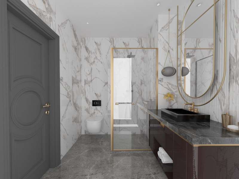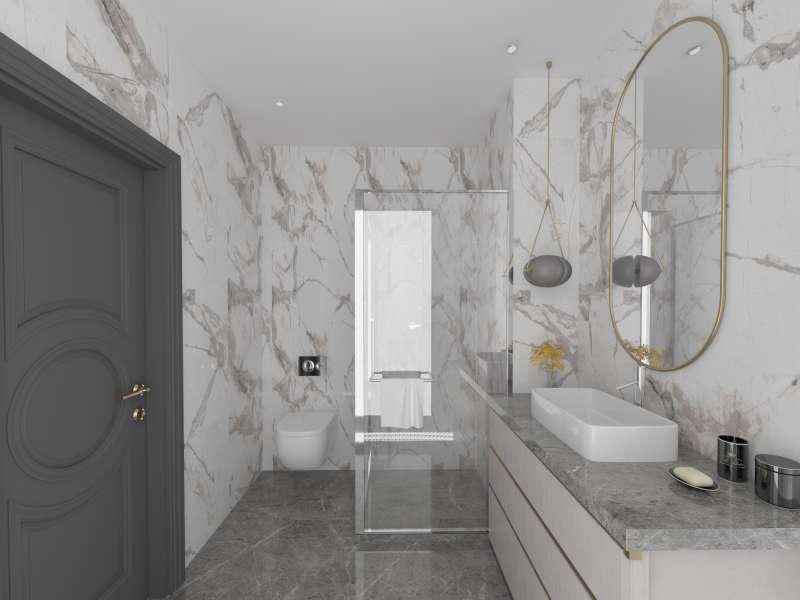 The apartments for sale are enriched with ceramic floorings, LED lights in the kitchens, double-glazed windows, high-quality steel exterior doors, and intercom systems. Also, the apartments have fully equipped bathrooms and kitchen sets.