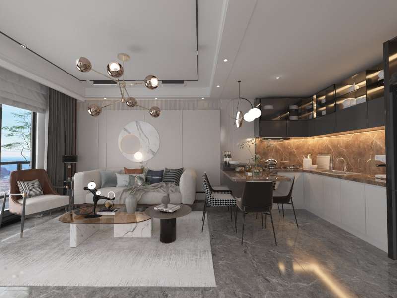 The apartments are situated in the Alanya district of Antalya, Turkey. Alanya has an increasing popularity with its picturesque nature, beautiful sea, and urban developments. Along with the long coastal line and historical city walls, Alanya offers a matchless atmosphere. Each year, thousands of local and foreign tourists visit Alanya. Here, there are various entertainment facilities, restaurants, long beaches, and a turquoise sea.