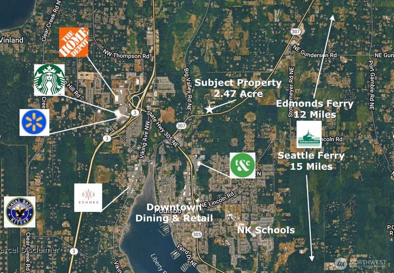 No viewing without appointment, contact your agent. Poulsbo acreage minutes to downtown Poulsbo, Silverdale, Naval Base Kitsap, Keyport, Seattle and Edmonds Ferry and all Kitsap has to offer. 2.47 wooded and private acres provide blank canvas for your unique vision. Sloped property creates excellent opportunity for custom build. Owner financing terms available.