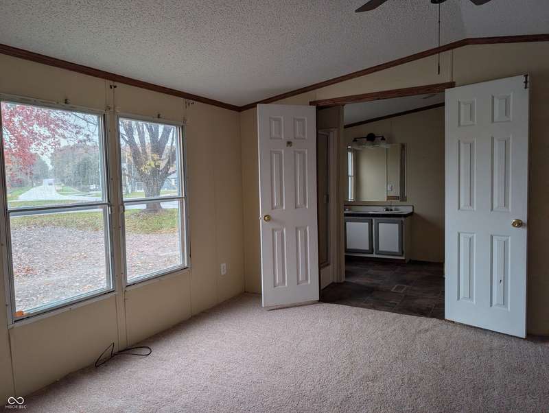 3517 Country Manor, North Vernon IN, this single-wide manufactured home presents a great opportunity. This property has been recently updated with new flooring throughout, fresh paint, new decks on front and back, ceiling fans etc. The 15 x15 living room invites you to come in, relax and create memories. The kitchen offers both style and functionality, featuring a practical kitchen peninsula and beautiful new tile backsplash. The primary bedroom provides a private retreat, complete with an ensuite bathroom with double sinks and stand up shower and soaking tub. This personal sanctuary offers a comfortable and stylish space to unwind after a long day. The split floor plan offers two additional bedrooms and full bath at the opposite side of the home providing plenty of space and convenience. Additional features include a shed, perfect for storage or hobbies, and a generous 11843 square feet lot area, offering ample outdoor space.