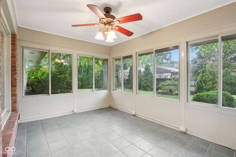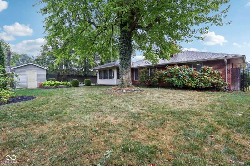 Welcome to this immaculate, beautifully landscaped brick ranch in Kenmore, conveniently located near BSU and Ball-IU Hospital. The kitchen sits at the heart of the home, connecting the breakfast nook, dining room, and living area-perfect for entertaining. Three spacious bedrooms showcase gleaming hardwood floors, while the kitchen, dining, and laundry areas are finished with ceramic tile The living room features a cozy gas log fireplace along with a view of the private backyard with mature trees. A partial basement offers a bonus room, half bath, and abundant storage space. The oversized two-car attached garage includes a dedicated workbench area. Recent updates include Kinetico water softener '20, exterior paint '21, new HVAC system with heat pump '22, Navien tankless water heater '24, a sunroom, and a paver patio-adding both comfort and style to this exceptional home.