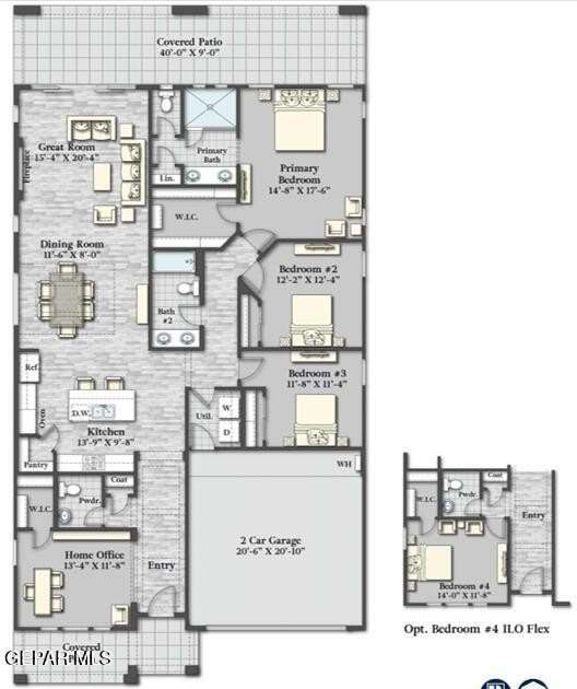 At the heart of Aidan-II lies a gourmet kitchen, equipped with a pantry and center island that overlooks the inviting dining room. Directly ahead, there is a large great room, featuring a fireplace that comes standard. This delightful home includes two sizable bedrooms, with a beautiful primary bedroom and private bath with walk-in closet. Other standout features is the flex room off of the spacious entry that can be optioned into a fourth bedroom, if desired.