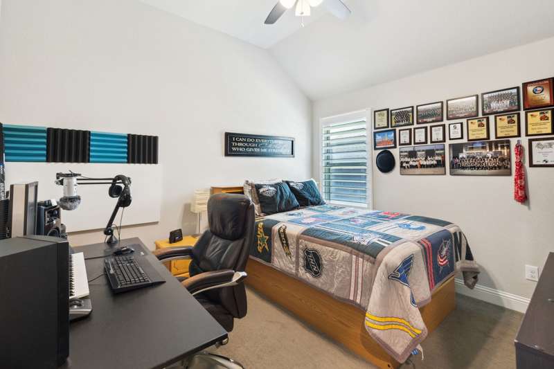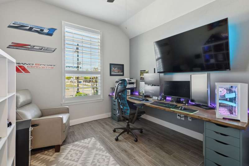 Experience refined single-story living on an expansive corner lot, nestled in the prestigious and amenity-rich Union Park community. This impeccably designed residence showcases a rare FOUR CAR GARAGE and a sprawling, open-concept layout enhanced by plantation shutters and exquisite designer lighting. The gourmet kitchen is a culinary showpiece, featuring gleaming granite countertops, an oversized island, custom built-in cabinetry, stainless steel appliances, a gas cooktop and a reverse osmosis water filtration system at the sink. The elegant dining area flows effortlessly for entertaining, while the dedicated media room offers the perfect setting for movie nights at home. With five generously sized bedroomsincluding one currently utilized as a study with an expansive walk-in closetand three luxurious full baths, this home offers unmatched versatility and comfort. The serene primary suite is a private retreat, complete with an en suite bath boasting a garden tub, extended vanity with knee space, reverse osmosis water filters at the faucets, custom built-in cabinet, storage cabinet in the water closet and dual walk-in closets. Secondary baths are equally well-appointed, each enhanced with storage cabinets above the toilets. Storage is thoughtfully integrated throughout the home, with three hallway closetsincluding two oversizedoffering ample space for linens, seasonal dcor, and more. Step outside to a private outdoor oasis featuring a covered patio, extended canopy and a sprawling backyard perfect for alfresco gatherings or quiet relaxation. Additional highlights include decked attic storage, a spacious utility room with built-in cabinetry and sink and front lawn maintenance provided by the HOA for effortless living. Located within Union Park, a vibrant master-planned community offering a 30-acre Central Park, greenbelts, a food truck park, pavilion, and resort-style poolthis exceptional property combines luxury, functionality, and an unmatched lifestyle.