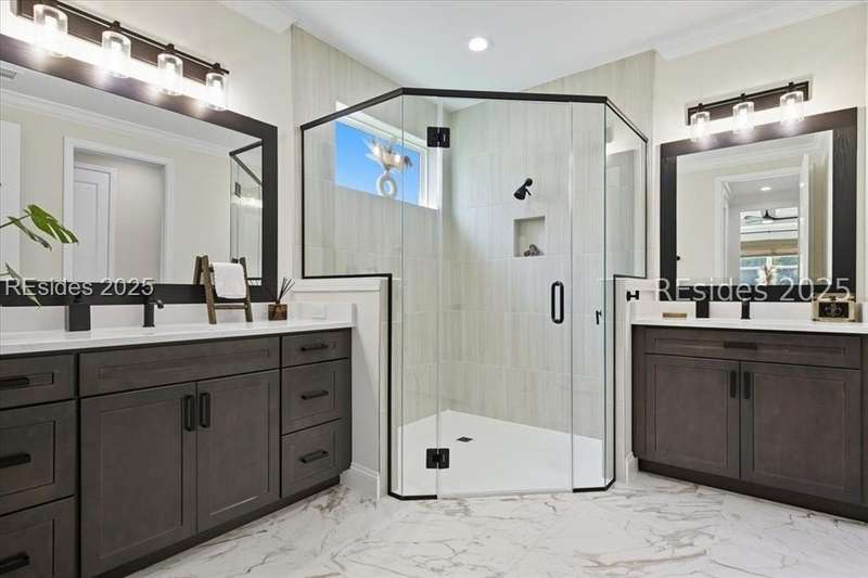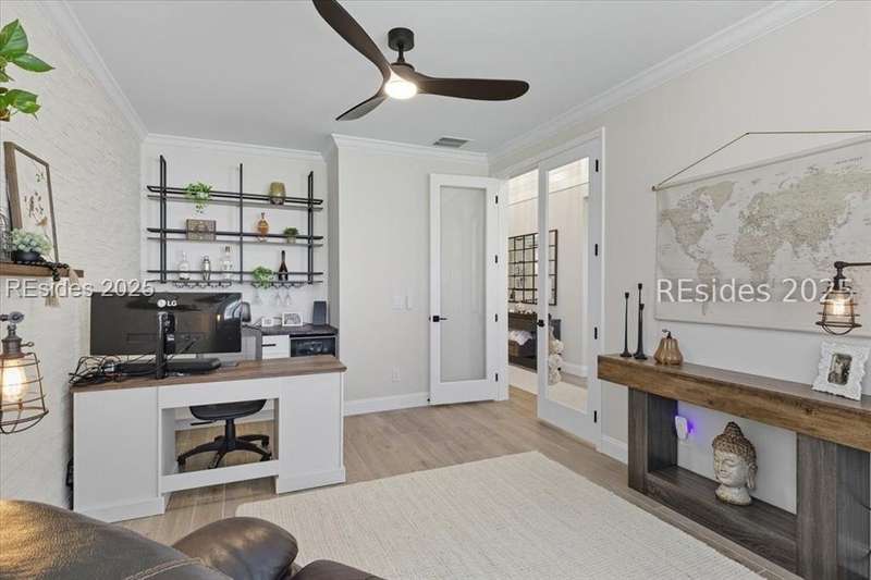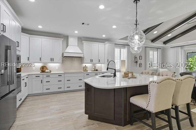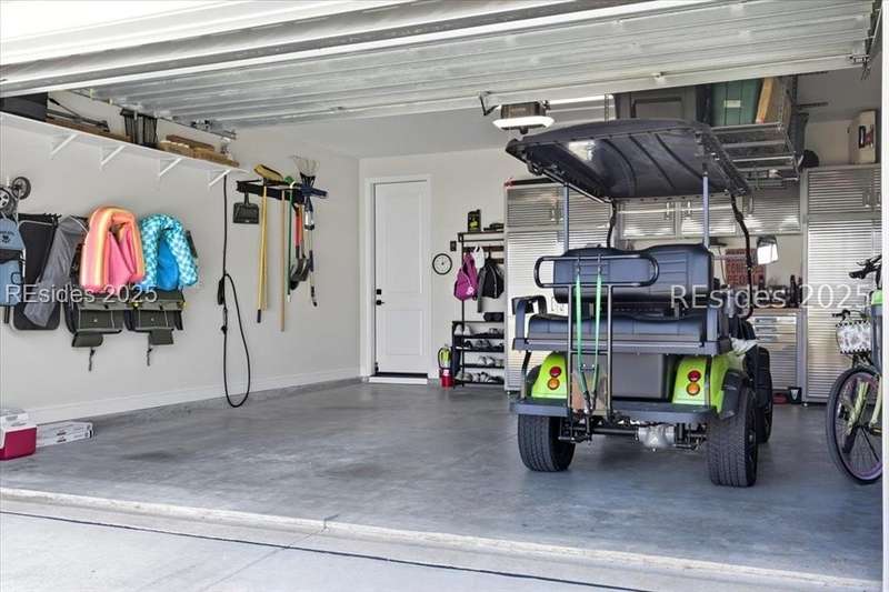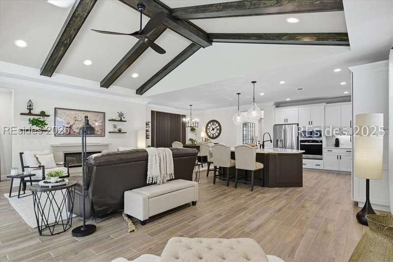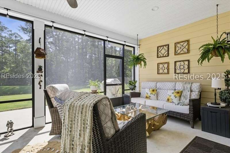 Discover the epitome of luxurious living LIKE NO OTHER in this stunning & rare Breeze Bay home in Latitude Margaritaville Hilton Head. This exquisite home is complimented by wooded preserve & lagoon view enjoyed on your private screened lanai. Step inside to be greeted by an impeccable entry way with shiplap, ceiling beams, tile floor & modern farmhouse chandeliers. The bay has open concept living accentuated by 8 doors & 42 cabinets throughout to enhance the spacious feel. The heart of this home is the expansive gourmet kitchen featuring a massive quartz countertop island that is perfect for entertaining or casual dining. Equipped with high-end stainless steel appliances - 36" induction stovetop, LG zero clearance craft ice refrigerator, Delta touch faucet & cabinet pullouts - a culinary enthusiasts dream. The living room is designed for both comfort & style, showcasing an LED Electric fireplace with heater that serves as a focal point along with contemporary wall shelves, plantation shutters, & Samsung 65 Frame TV included! The accented beamed ceiling in both living room & primary bedroom adds distinctive architectural detail that enhances the overall aesthetic of the home. The dining room is adorned with a custom lighted accent wall creating a sophisticated ambiance for formal meals. The hobby/flex room is extravagant featuring a stone clad accent wall, dry bar, custom cabinets, & shelving unit giving the look of first class. The 2 car garage boasts prime tool cabinets, ceiling storage rack, whole house water filtration and surge protector & 240V electrical outlet for your golf cart. This property is not just a home, it is a lifestyle choice. Whether you are looking to retire in style or seeking a vibrant community atmosphere, this home offers everything you are looking for and more! Home is also available to be purchased FURNISHED! Schedule a tour & experience the elegance of this remarkable home for yourself!