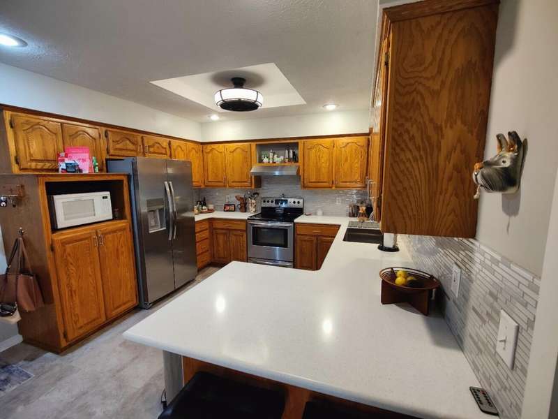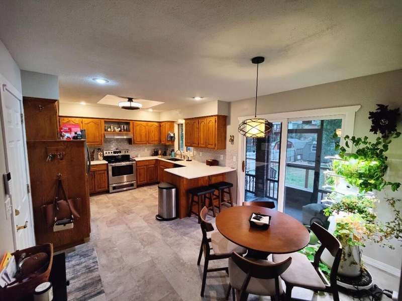 This beautifully maintained and updated split level home is ideal for both everyday living and entertaining. This home features two living areas that includes a very spacious Great room. On the main level you will find the living room with a gas fireplace, formal dining room and the kitchen with abundant cabinetry and a breakfast bar. Off the kitchen, you will find a cozy screened-in porch and new deck area. On the upper level is the Primary suite, which is a comfortable space including a sitting area. There are two walk-in closets and an ensuite that offers dual sinks and a walk-in shower. In addition to the primary suite, you'll find a second bedroom, full bathroom and laundry room, for added convenience. On the lower level, there is a spacious Great room with a gas fireplace and a full wet bar, perfect for entertaining. You will also find an additional bedroom and another full bathroom. The Walk-out basement opens to a large, fenced-in back yard with mature trees and an oversized storage shed. HOA amenities include a newly renovated pool (2025), kids' playground and trash service. This beautiful home is conveniently located in the Kickapoo District with easy access to shopping, restaurants and more! There are too many updates to list, but just to get you started, the roof, HVAC and water heater have been replaced within the last 5 years.