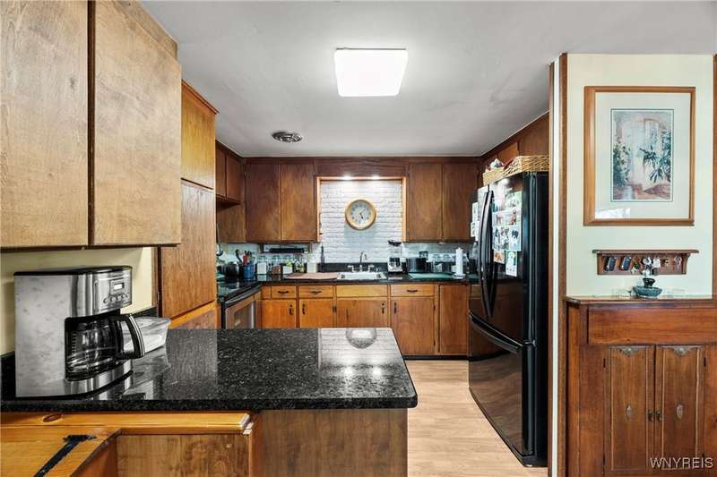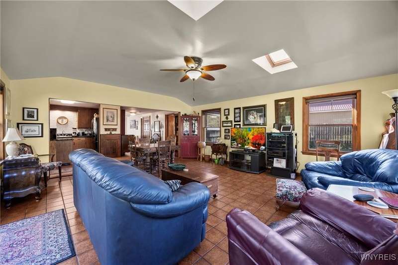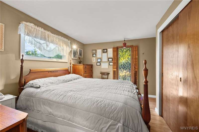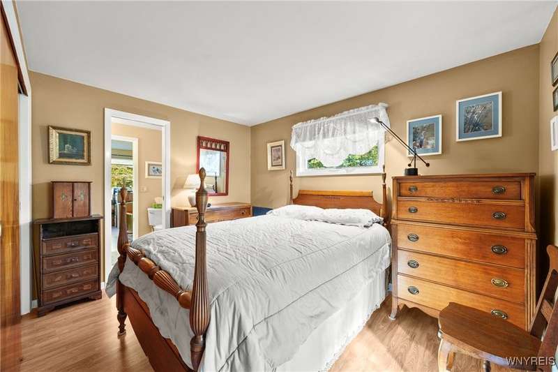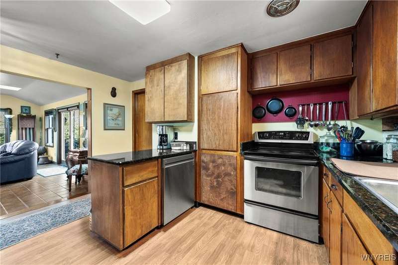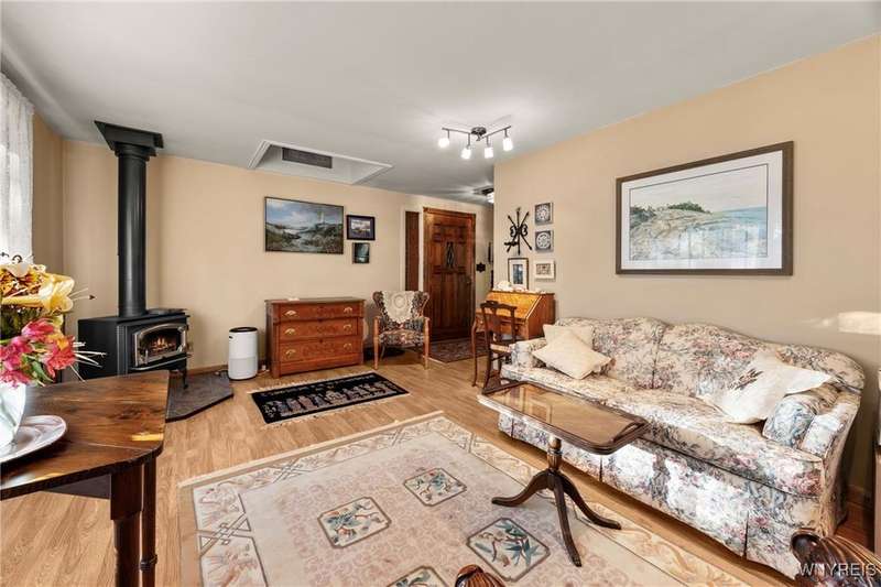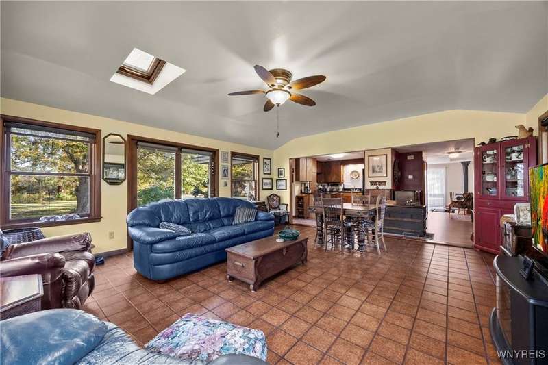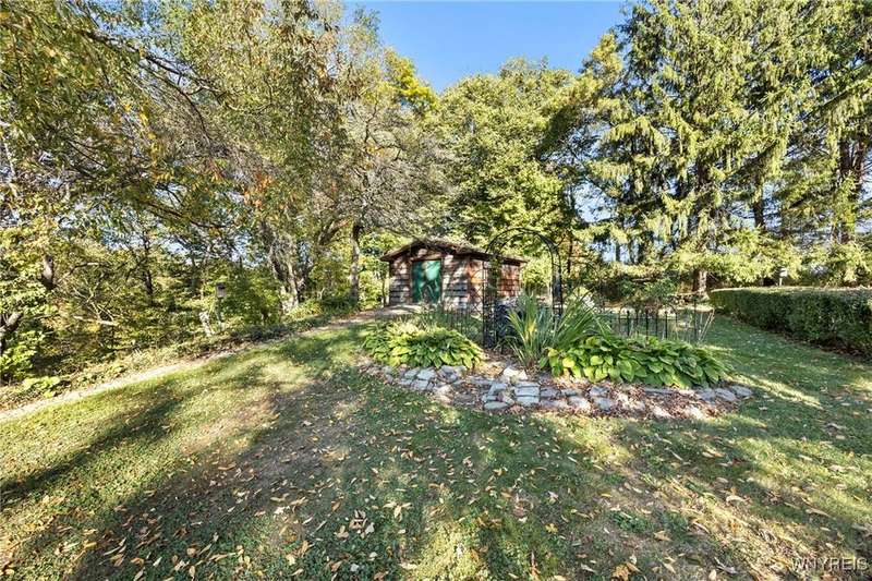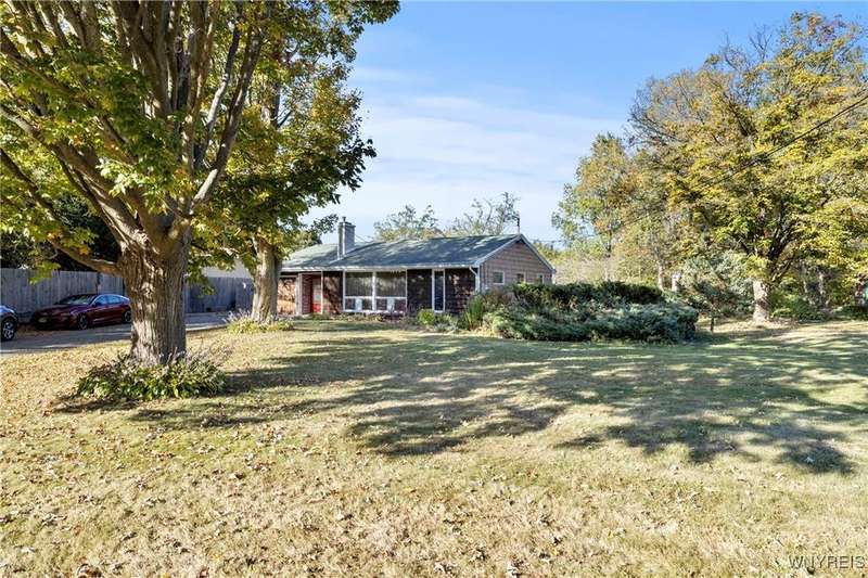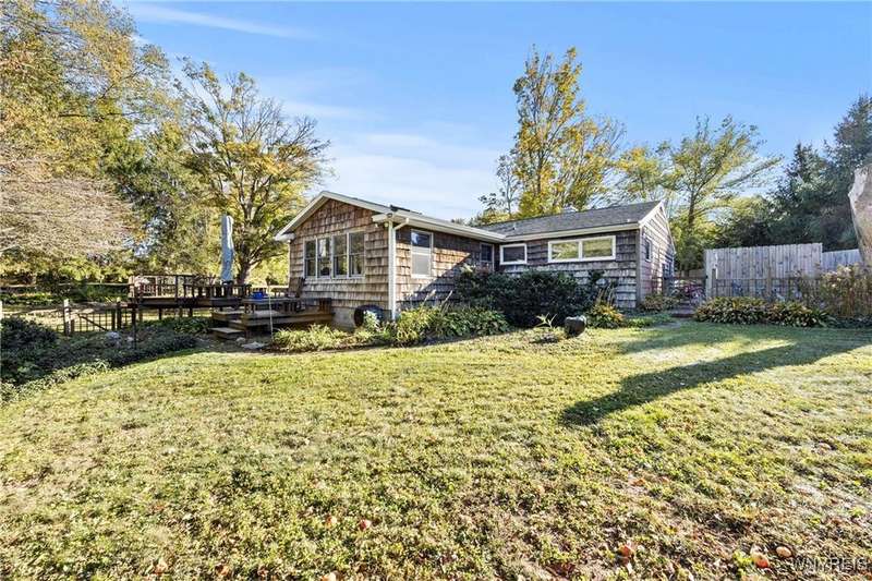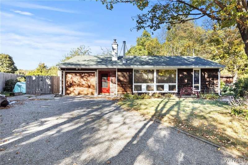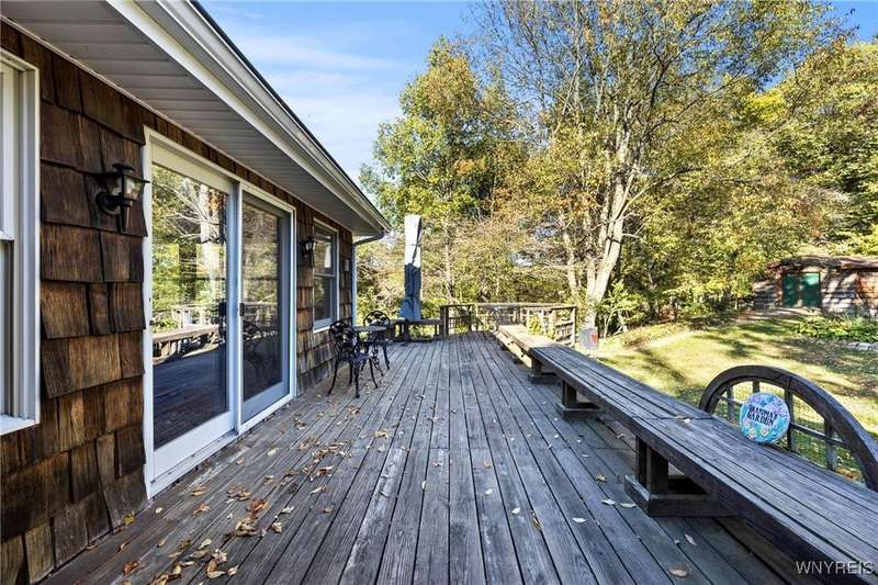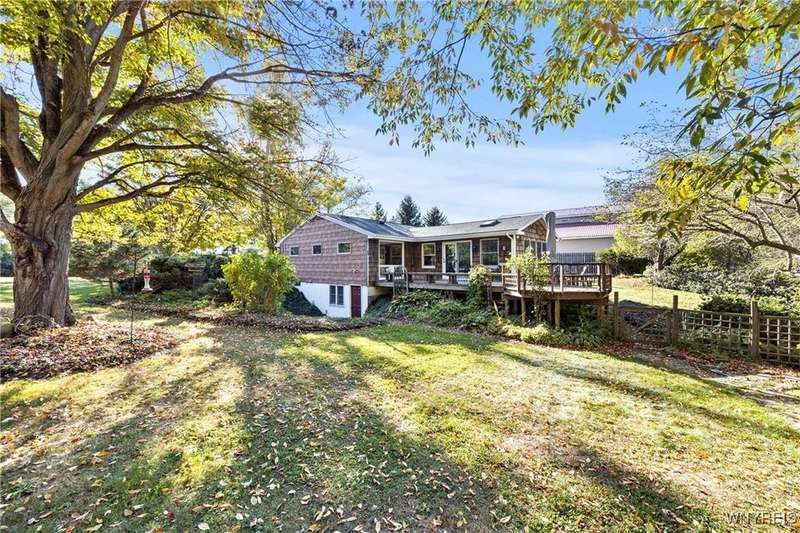 SHOWINGS BEGIN AT OPEN HOUSE, SATURDAY, 10/4 at 1PM. Enjoy the best of both worlds?peaceful country living just 5 minutes from the charming Village of East Aurora! This dynamite 3-bedroom, 2-bath Ranch-style home is nestled on a scenic 1-acre lot with sweeping views of nature in every direction. Whether you're sipping coffee on one of the two spacious decks or relaxing inside, you'll be surrounded by beauty year-round. Step inside and fall in love with the bright, open floor plan. The sun-drenched Family Room, wrapped in windows and skylights, offers panoramic views and a tranquil ambiance. It flows seamlessly into the fully-applianced kitchen, complete with granite countertops?perfect for entertaining guests or enjoying cozy nights in. Each of the three bedrooms boasts generous double closets, and you'll find ample storage throughout the home. The two full ceramic-tiled bathrooms include a clever layout, with one conveniently situated between two bedrooms and accessible via a pocket door. The Living Room features a dramatic floor-to-ceiling picture window and a cozy woodstove?ideal for chilly evenings. Downstairs, you'll find two finished rooms in the basement, plus a utility section and a walkout for added convenience. Outside, there's a garden shed roomy enough for your riding mower, snowblower, and all your tools. Additional highlights include central air, an attached 1-car garage, and low taxes in a welcoming, close-knit community. Lovingly maintained by its current owner, this home offers privacy, serenity, and modern comfort in a picturesque rural setting. If you love nature, value space, and crave a touch of the countryside?this is the one you've been waiting for!