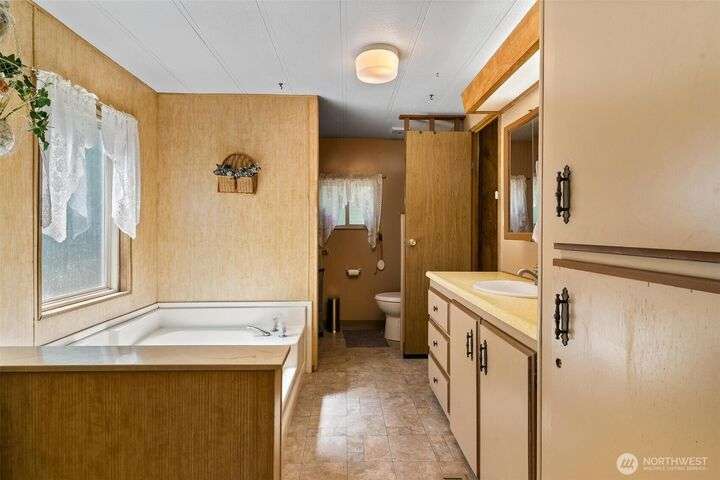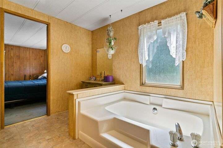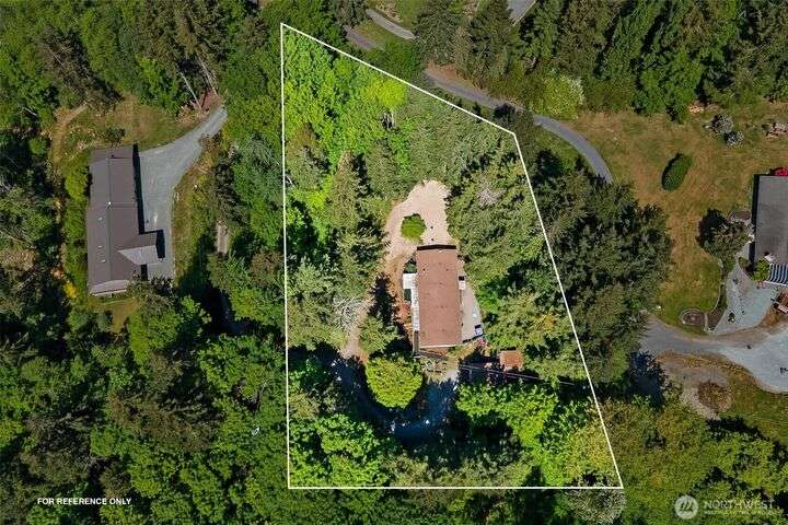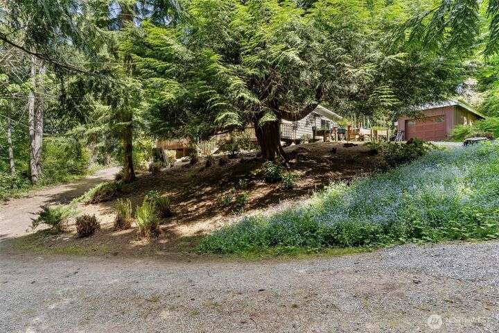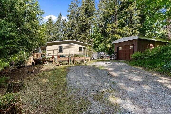 Tremendous Value Property w/land value alone of $240k! 1+ Acres w/ peek-a-boo Sound Views. Brand New 3-Bedroom Septic & Drainfield installed May of 2025. Community water & ALL other utilities connected. Detached 580sf single-car garage (constructed with 6x6 beams) including separate workshop. AMPLE RV Parking or space to build potential, additional separate dwelling. PLUS, an expansive 1800+sf double-wide w/3 large bedrooms & 2 large baths, & new hot water heater. Double wide needs a bit of TLC (deck/roof/ceiling work) but is absolutely livable/clean. Lot is lovely with lush vegetation and privacy. Trim up some old growth trees to open up the view! Remove current manu-home and replace with new home to build substantial equity.