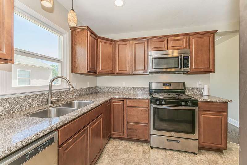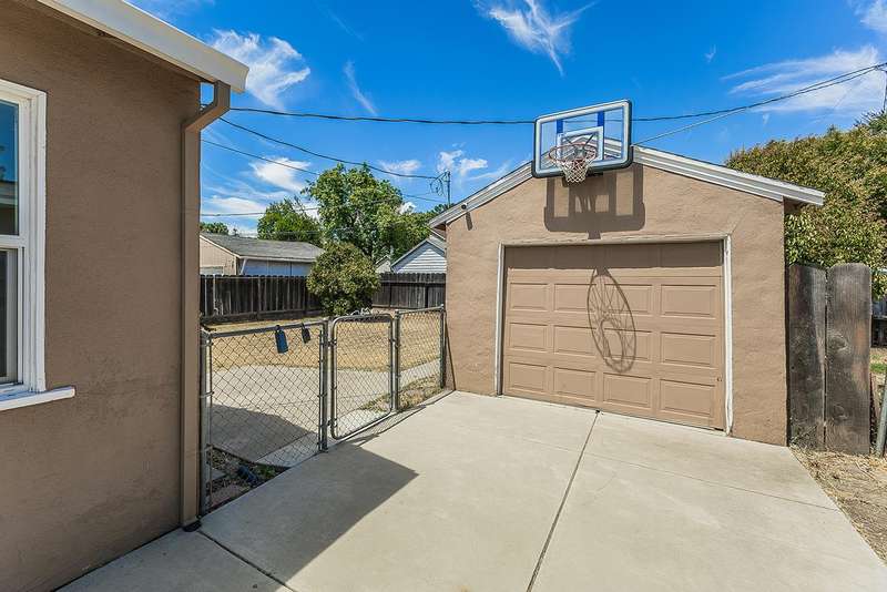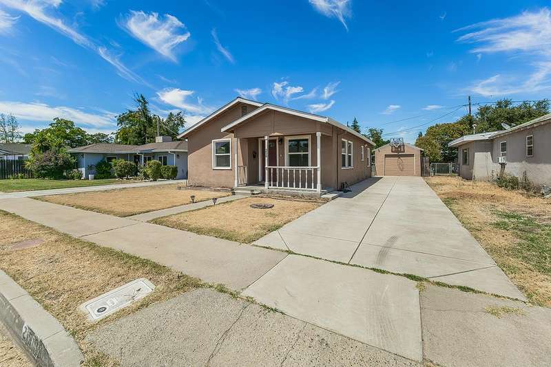 Fully renovated in 2021, this charming home features updated appliances, modern flooring, fresh interior paint, and more. Stay connected and secure with a SimpliSafe alarm system and Smart Thermostat, both of which can be controlled remotely from your phone. Exterior cameras will also remain with the property for added peace of mind. Enjoy abundant natural light throughout, complemented by energy-efficient dual pane windows.The property offers a generous yard with fruit-bearing peach and orange trees, a detached garage, and a long driveway with ample parking. Additional engineered hardwood flooring is included for replacements Located just a block from a local school and with plenty of street parking, this home combines comfort, convenience, and practicality.