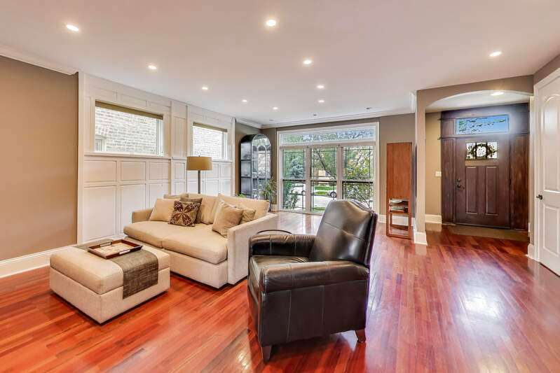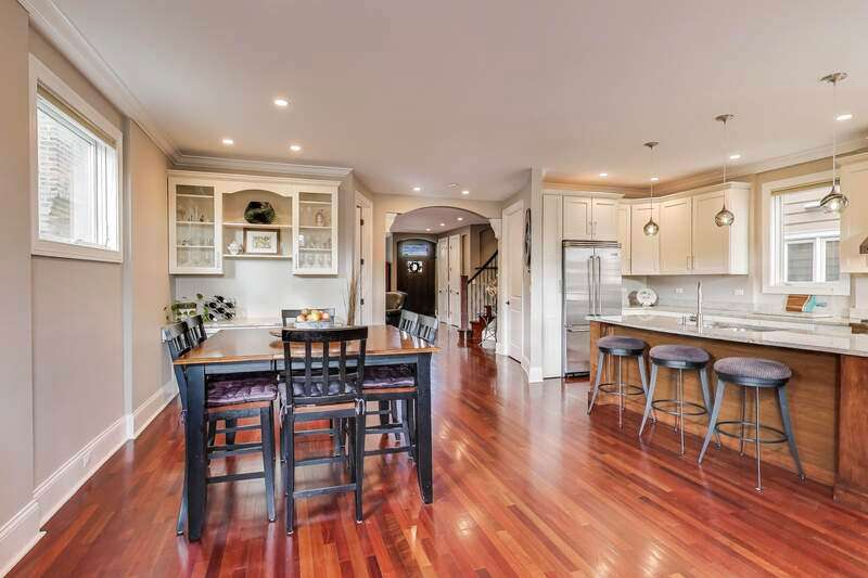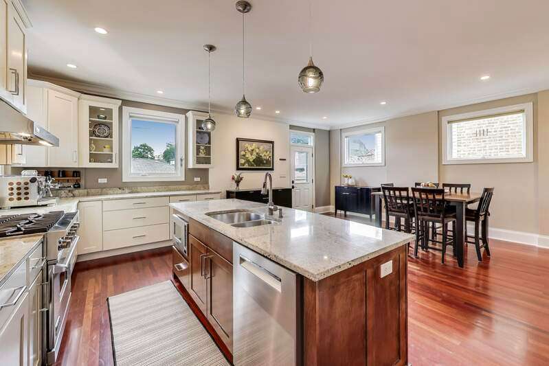 Experience the perfect blend of luxury and convenience in this stunning Norwood Park home. Built in 2012 and thoughtfully maintained and updated, every detail is designed to elevate your everyday living. Step inside and immediately feel the openness with an extra-wide layout flooded with natural light, soaring ceilings on every level, and rich architectural details like curved arches, statement cutouts, and a grand staircase that anchors the main floor. The living room's oversized windows frame the tree-lined street and flow seamlessly into the chef's kitchen, a true showstopper featuring Viking Professional stainless steel appliances, new Bosch dishwasher, granite countertops, and a generous island with seating perfect for gatherings. A deck just off the kitchen invites effortless indoor-outdoor entertaining with space for grilling, dining, or simply enjoying the spacious yard. Upstairs, the luxury primary suite feels like a retreat with tray ceilings, a custom walk-in closet, and a spa-like ensuite offering a dual-sink vanity, jetted tub, and walk-in shower. Two additional bedrooms are bright and airy, sharing an updated hall bath with another dual-sink vanity and walk-in shower. Convenience continues with second floor laundry featuring an LG washer and dryer. The lower level is designed for entertaining, featuring radiant flooring throughout, impressive 9' ceilings, a wet bar with wine and beverage fridges, and a custom entertainment system with surround sound, a 120" projection screen, and AV rack ($15,000 upgrade). An additional room with ensuite is ideal for guests, home gym, play room or office. Outside, enjoy the extra wide lot with a 2.5-car garage, low-maintenance turf yard, and professional landscaping, as well as the unparalleled longevity of a slate roof. More updates include a newer composite front porch (2021), portico (2018), and numerous updates throughout, including a NEW NTI boiler (2016), and upgraded mechanicals for peace of mind. Perfectly situated near the Blue Line and Metra access, I-90/I-94, top-rated Taft High School, parks, restaurants and shopping, this home offers both luxury and lifestyle in one incredible package. Welcome home!