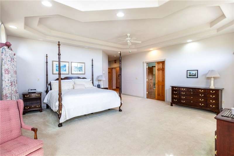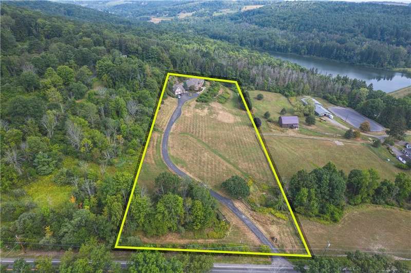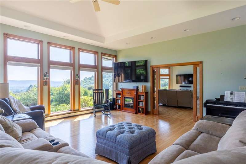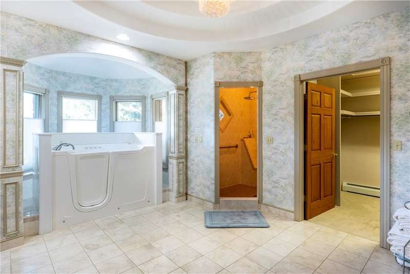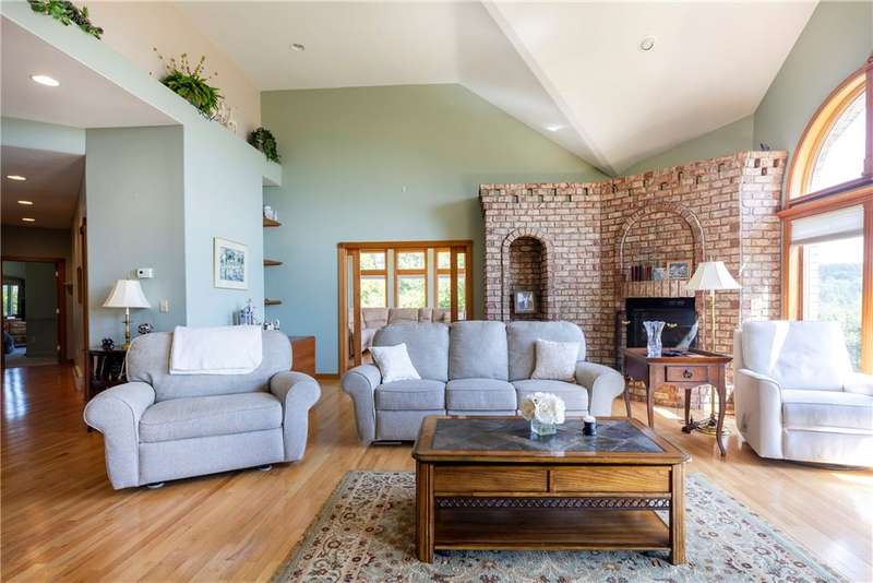 Absolutely spectacular custom built home with quality throughout. This 4 bedroom, executive ranch style home is situated on 6 acres offering amazing views of the area and is centrally located. Double door vaulted entryway, formal living room with double sided fireplace and doors leading to an outside patio, formal dining room can seat many, large great room with fireplace with expansive windows to capture the view; sunroom or reading room, fabulous eat-in kitchen with all top of the line appliances, breakfast bar, dining area and adjacent pantry has numerous storage cabinets and desk area plus there is an adjacent? bath. The east wing has 3 very good size bedrooms and 2 full baths. The west wing has a private office den or nursery off the huge master bedroom suite which include a spacious bathroom with double vanity, shower, walk-in tub, private toilet and extra-large walk-in closet. There is a first floor laundry plus a lower level recreation room with full bath. The full, concrete basement is divided into sections which could be easily finished into several additional rooms. There are 2 hot water baseboard furnaces and 2 brand new central air units. The breezeway attaches the house to the 3 car garage. Above the garage is a 2 room apartment with a living room, bedroom and full bath. Everything you have been looking for is right here! It's gorgeous!