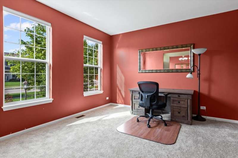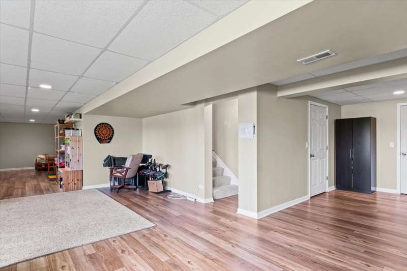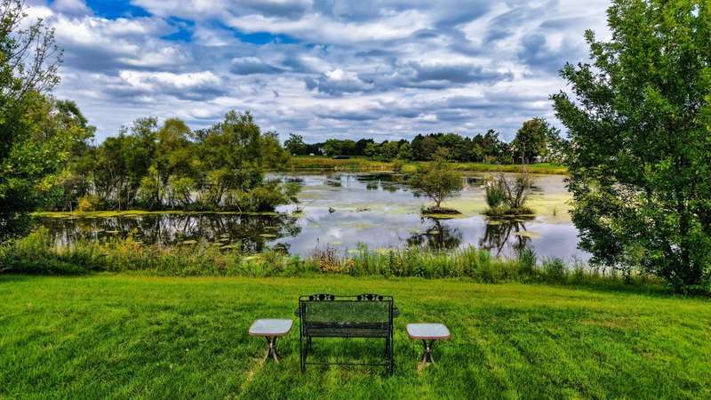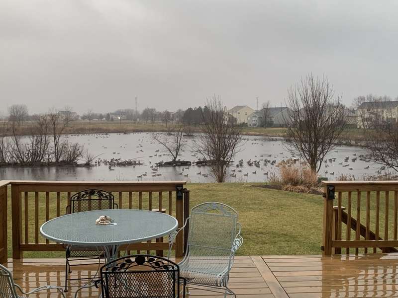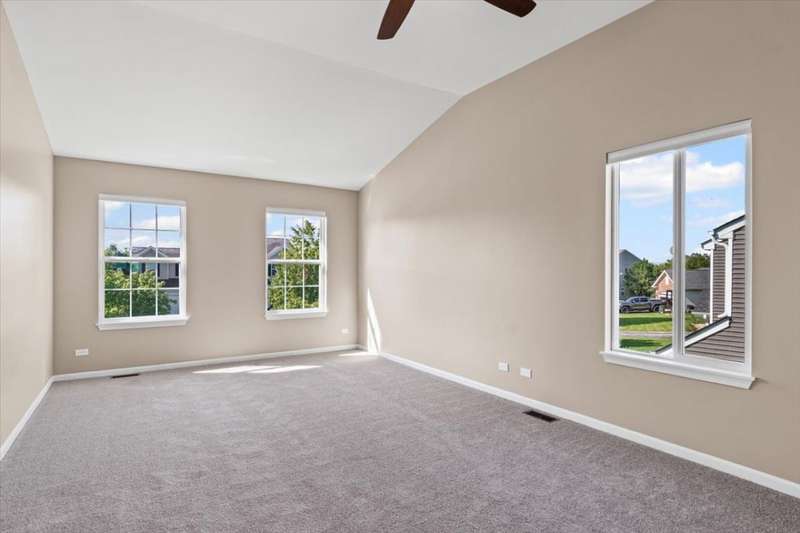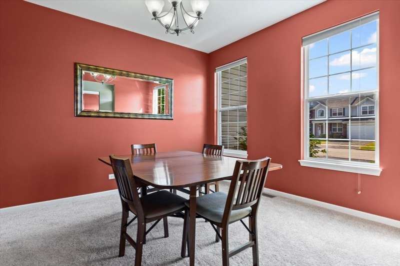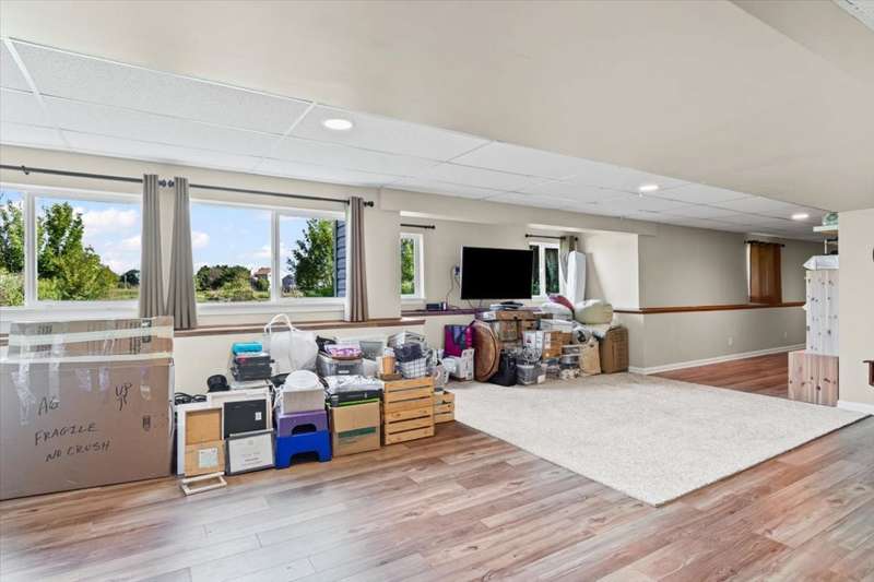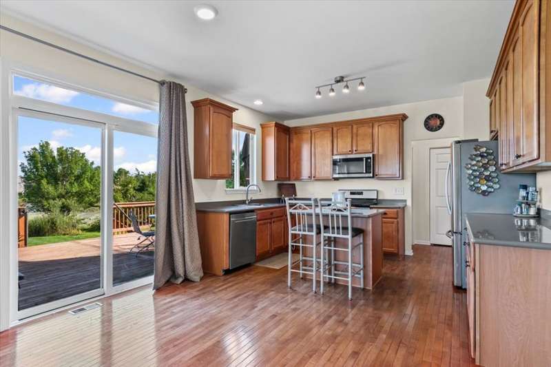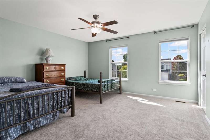 4 bedroom, 2.5 bathroom home in Whispering Meadows with breathtaking natural surroundings and serene lake views. This home offers the rare combination of everyday comfort and a backyard that feels like a private nature preserve. Overlooking a stocked 7-acre lake, you can enjoy fishing, skating, or ice fishing in the winter without the upkeep, since the HOA manages the lake. The shallow shoreline, small nesting islands, and annual conservation efforts create a haven for wildlife. Watch eagles, osprey, herons, and ducks soar overhead, or spot migratory birds that pause here each spring and fall. Perennial gardens add seasonal color, while the south-facing driveway helps snow melt away quickly in winter. Inside, a welcoming two-story foyer opens to flexible living and dining spaces. The bright island kitchen features 42 cabinets and stainless steel appliances (newer stove and dishwasher) and flows into the family room with fireplace. A sunroom with expansive windows overlooks the lake and is the perfect spot to enjoy bird watching or peaceful views. Upstairs, the primary suite offers vaulted ceiling, walk-in closet, and private bath. The finished lookout basement also captures the water and wildlife views, with space for recreation, office, or fitness. First-floor laundry adds convenience. Roof and siding were replaced in 2019, and new carpet has just been installed. Relax on the deck with panoramic water and tree views, or enjoy community amenities including clubhouse, pool, fitness room, playgrounds, and walking paths. A perfect setting for anyone who loves nature.