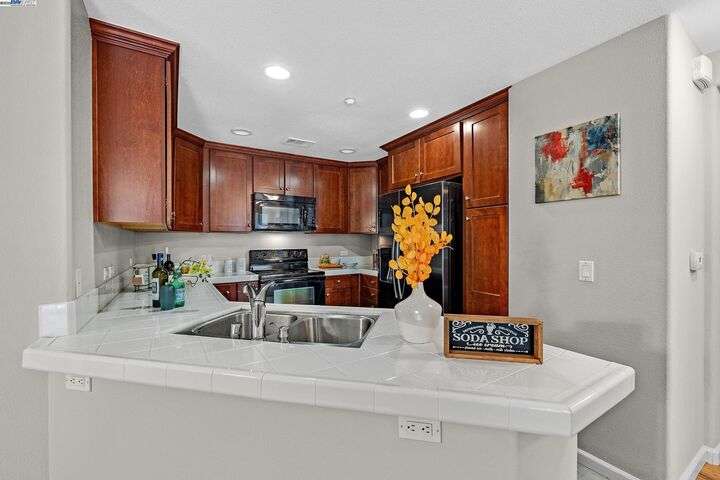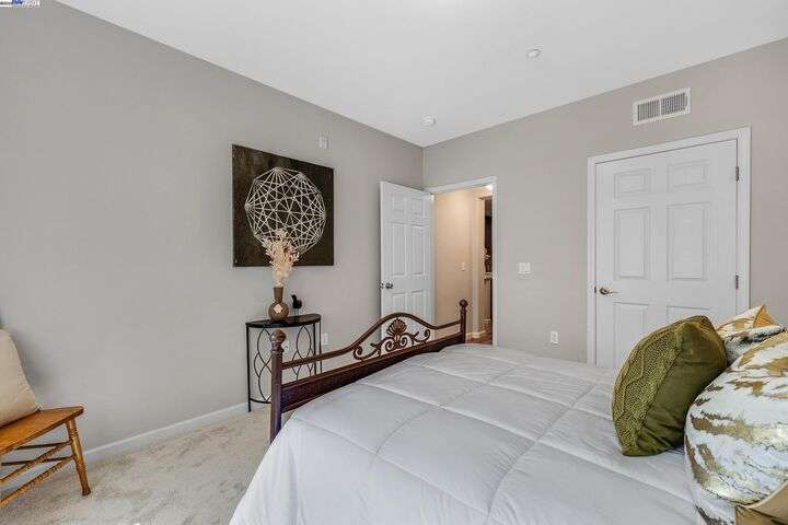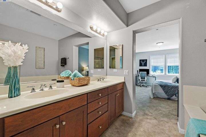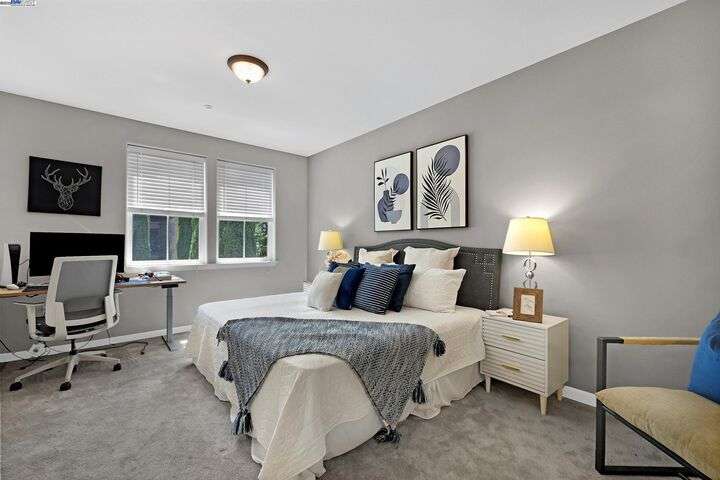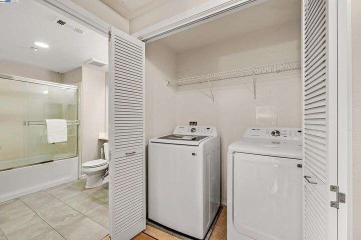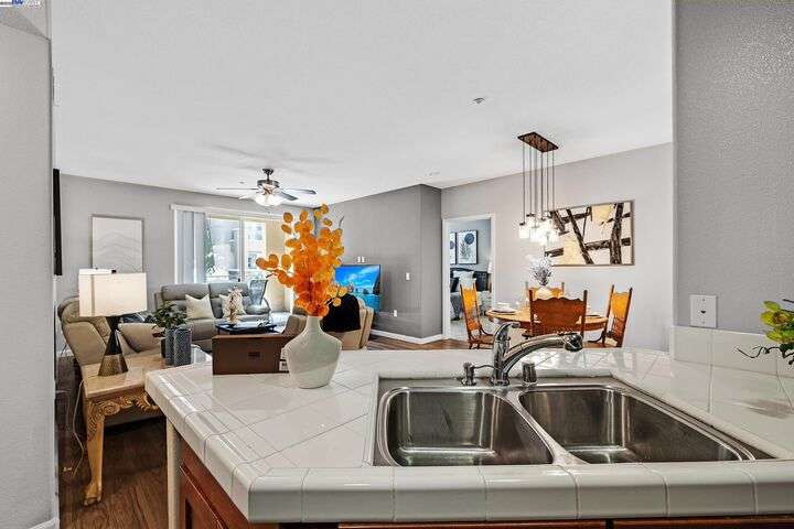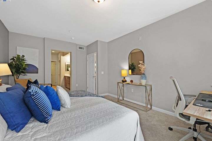 Welcome to your new home in the highly sought-after, gated Montebello Community. This luxurious condo, nestled in the prestigious Warm Springs area, is an exceptional opportunity for families, professionals, and investors alike. Step inside and discover an open-concept living and dining area, bathed in natural light and featuring new laminate flooring. The spacious gourmet kitchen is a chef's dream, boasting ample counter space, abundant cabinetry, and a full suite of stainless steel appliances, including a cooktop range, built-in oven, microwave, dishwasher, and refrigerator. The large master suite is a private retreat, complete with a walk-in closet and a spa-like suite bathroom featuring a separate stall shower, soaking tub, and a double-sink vanity. The second bedroom is equally comfortable, with plush carpeting. This home also includes a new in-unit washer and dryer, central heating and air , and a spacious balcony perfect for relaxing. Two assigned tandem parking spots in a secured, gated garage, as well as plenty of guest parking throughout the community. With a low monthly HOA fee of $423, you can enjoy fantastic amenities, including a clubhouse, gym, water, trash ,Unbeatable location with easy access to freeways ,major tech companies, shopping, Award winning schools.