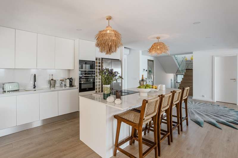 This fantastic detached villa is on the seafront and is considered one of the most exclusive villas in the Algarve. It has unobstructed sea views and a unique location where no additional construction is possible, as it is a protected natural area. This property is spread over 3 floors and consists of 5 bedrooms, all en-suite and with large windows facing south and the surrounding landscape. It also has 2 living rooms, an infinity pool, a jacuzzi on the top floor, a sauna, a gym, a cinema room, a wine cellar and a garage. The strengths of this luxurious villa are certainly the endless views of the ocean and Arrifes beach from anywhere in the house, as well as the vast and diverse leisure areas that the villa offers, which provide unique moments of fun and relaxation with friends and family. The property's location is privileged, as it is in a well-known and prime area of the Algarve, with easy access to all amenities, the Algarve's most paradisiacal beaches and 30 minutes from Faro International Airport. CHARACTERISTICS: Plot Area: 1 290 m2 | 13 885 sq ft Building Area: 296 m2 | 3 183 sq ft Bedrooms: 5 Bathrooms: 6 Garage: 1 Energy efficiency: A FEATURES: Detached house First line of the sea Unique location 3 floors 5 en-suite bedrooms South facing 2 living rooms Infinity pool Jacuzzi Sauna Gym Green spaces