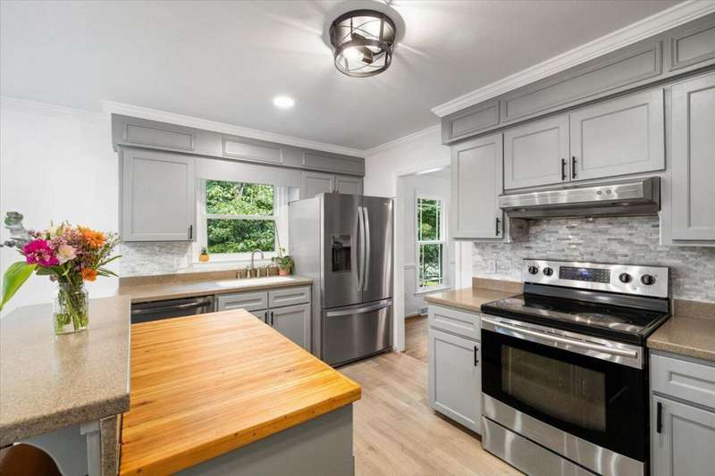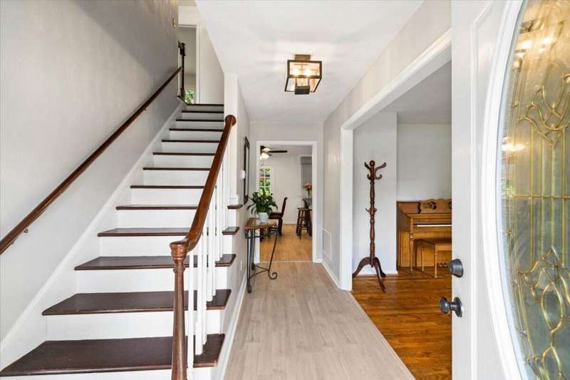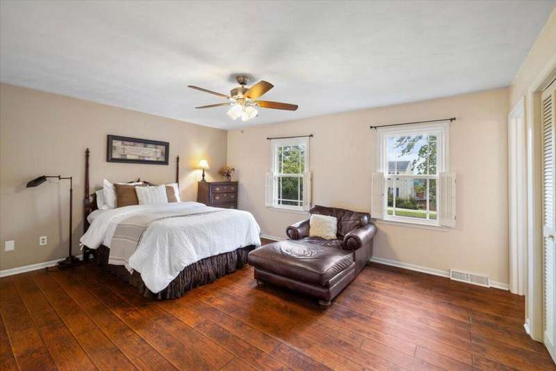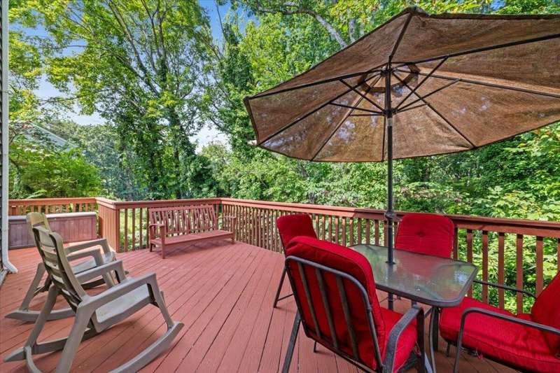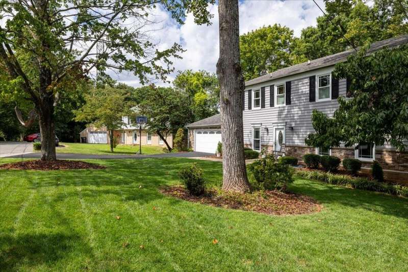 Located on a peaceful cul-de-sac, this spacious two-story Colonial offers 5 generously sized bedrooms and 3 1/2 baths, all thoughtfully updated for modern living. A welcoming foyer opens to a formal living and dining rooms, while the heart of the home is a bright and beautifully updated eat-in kitchen that flows seamlessly into the family room, where new carpet and abundant natural light make gathering easy. Step out onto the expansive deck to enjoy a private, tree-lined backyard ~ perfect for outdoor dining & entertaining. A finished walkout basement - with new carpet, a full bath, recreation area, and office - adds flexible living or work-from home options. Recent improvements included fresh interior paint, replacement windows, new siding and gutters, plus updated fixtures.