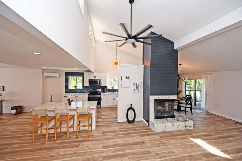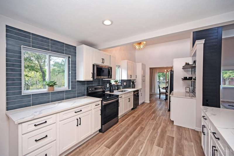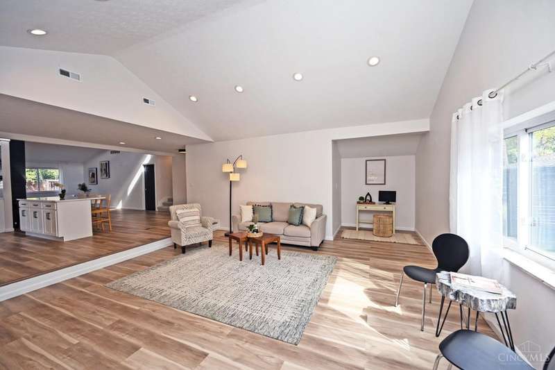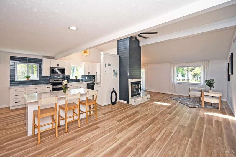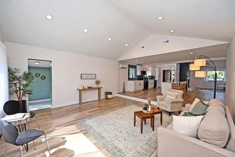 You wont want to miss this remodeled ranch on nearly an acre in a prime Loveland location! Enjoy a vaulted, expanded floor plan with a bright entry, spacious living room and family room, and stunning quartz kitchen with stainless appliances and a center island. Open living and dining areas feature a statement fireplace, while the primary suite offers a walk-in closet and dual vanity bath. Designer finishes shine throughout with LVP flooring & new carpet in the bedrooms. Vaulted ceiling and lots of natural light fill this home. Relax on the large back deck overlooking the private, tree-lined yard. Full basement, carport, and extra parking! New HVAC & HWH, roof is only a couple years old.