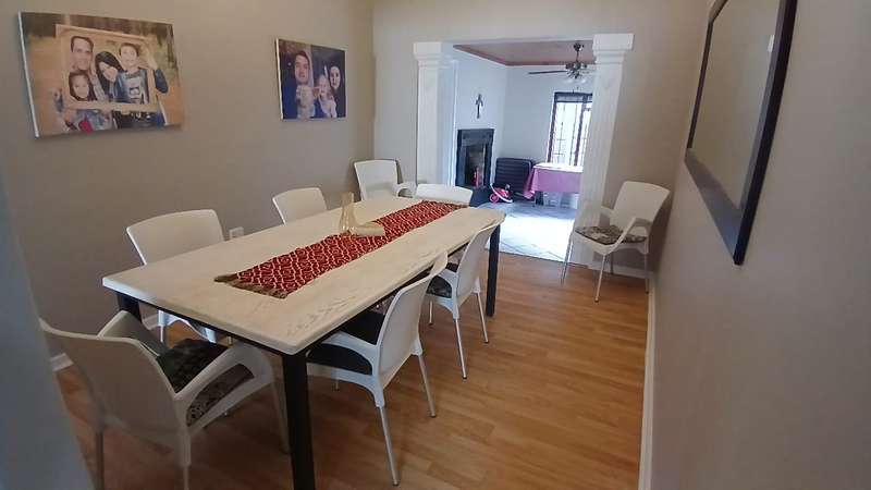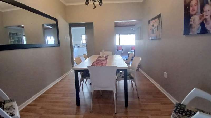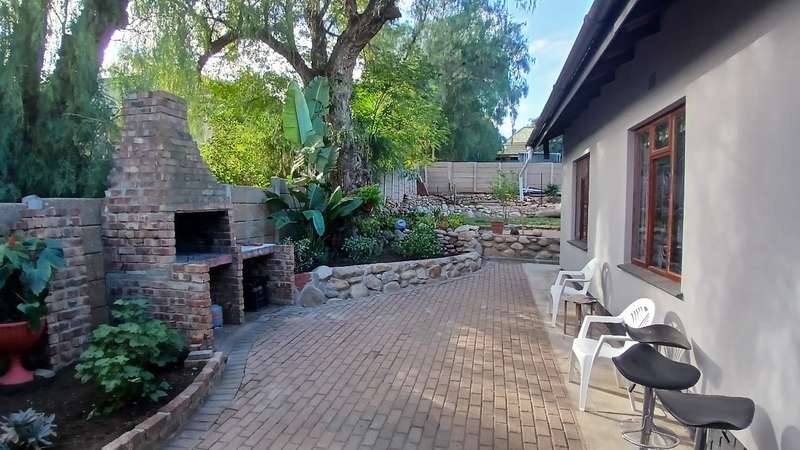This immaculate 3-bedroom home is located in a tranquil neighborhood, just a short stroll from a well-regarded high school. The generously sized rooms provide ample space, and the cozy living area features a delightful fireplace. Enjoy a charming braai area shaded by trees, perfect for those hot summer days. Feel free to reach out to me for more information!