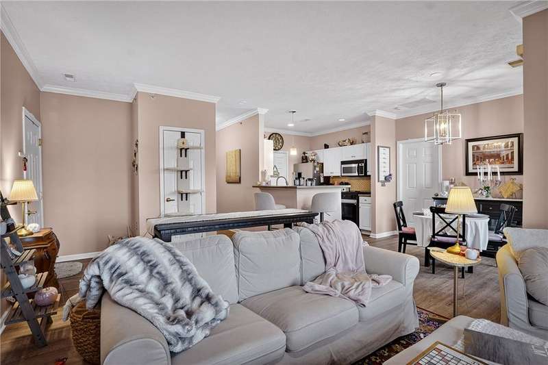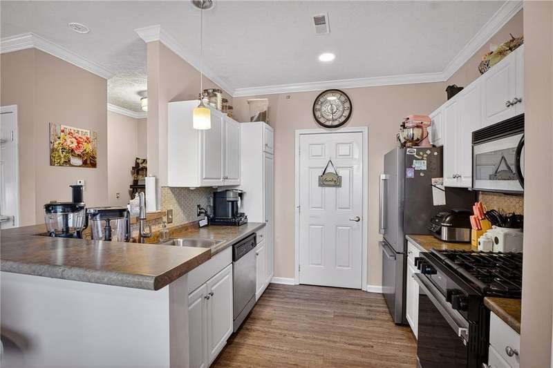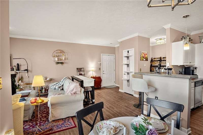 Well cared for 2 bedroom, 2 full bath condo located in the Foxmoor community. This second floor unit offers an easy, open layout with luxury vinyl plank flooring throughout. The living room features a gas fireplace that adds warmth, ambiance, and ample natural light. The dining area has a newer light fixture and provides direct access to a covered private patio via sliding glass doors. The updated kitchen includes new stainless steel appliances, a pantry, and a new backsplash, with direct access to the laundry room. The primary bedroom includes a ceiling fan, large walk-in closet, and private full bath. The second bedroom is set on the opposite side of the home with a full bath nearby, offering privacy for guests or work-from-home needs. This home is move-in ready and includes a private garage space #23. Low-maintenance living with well-kept grounds. Community amenities include pool, gym, clubhouse, snow removal, and exterior maintenance.