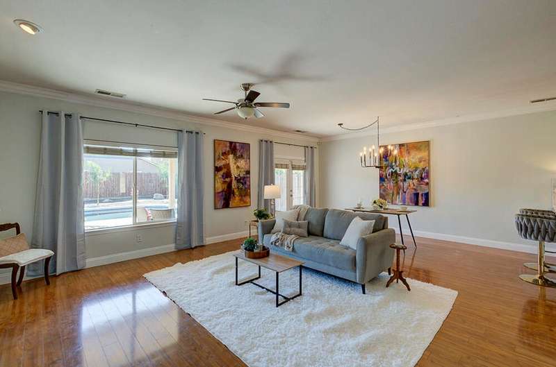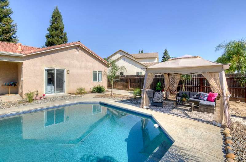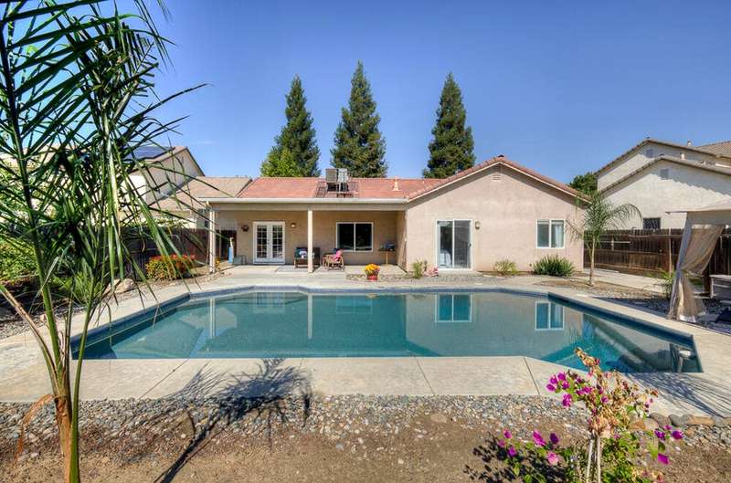 Better than NEW! Step inside and be wowed by this beautifully updated 4/2 home that has ALL the upgrades you want. Plus - a sparkling Pebble Tec POOL on a big yard, mature landscaping, & easy commute.This home is bathed in natural light. High ceilings, NEW designer paint, high-end flooring, & open floor plan make it feel bright & airy with finishing touches like NEW lighting, crown molding, tall baseboards, built-in TV cabinet, & granite gas fireplace.It all flows effortlessly through the French doors onto the extended covered patio and huge pool. Perfect for entertaining, drinking coffee, or taking a refreshing dip. Your own slice of cool, vacation living.Kitchen has TONS of counter space and cupboards with an oversized breakfast bar and brand NEW quartz countertops and full backsplash. They perfectly complement the stylish black cabinets with undercabinet lighting, brushed gold handles, & stainless steel appliances.Private primary suite features a sliding door for tons of light and easy access to the hot tub pad. Relax with a soothing color palette & wood-look floors. Attached bath feels like a spa w/a deep soaking tub, separate shower, dual sinks, private toilet, and walk-in closet. All with NEW quartz counters and stylish black fixtures.Two more bedrooms with walk-in closets and NEW carpet, plus a fourth bedroom with wood floors that could be used as an office or media room. Hall bath has granite counters, glass sink, new lighting. Plenty of storage between the laundry room, hall closet, and linen cabinets.2-car garage w/metal gate to cemented side yard & custom metal security door. Enjoy a bit of nature walking up to the front door, updated w/glass window, new handle, new lights, stacked stone.Get anywhere in the Valley quickly! Fowler is conveniently off the 99, only 20min to Fresno, 10 to Selma, 30 to Visalia/Hanford. Plus a charming main street & respected schools.Come experience how great this house feels w/all updates DONE!