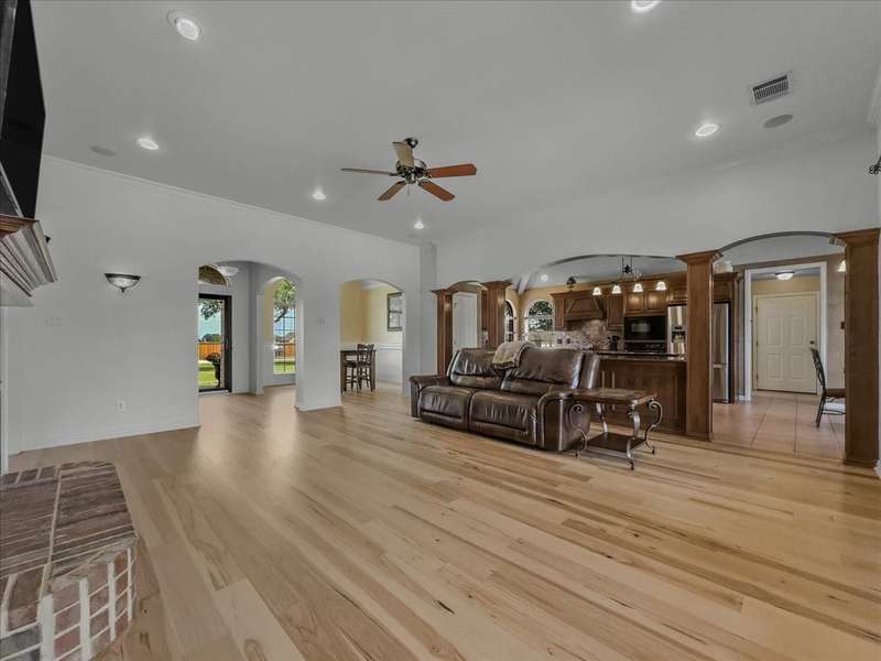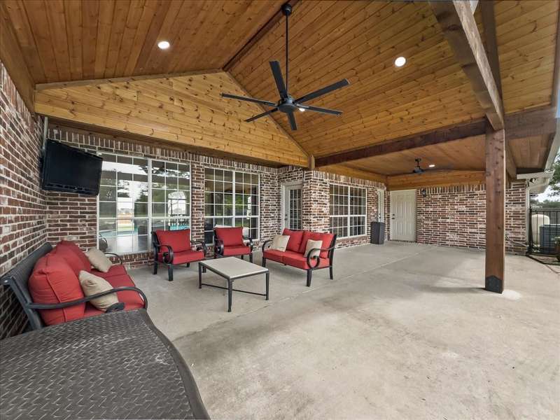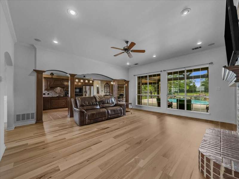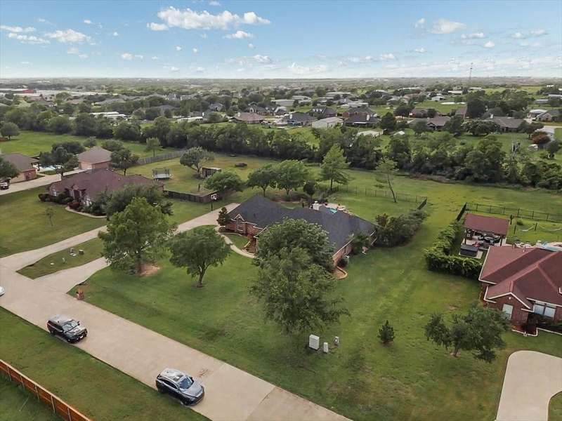 Stunning 1 acre retreat in desirable Shamrock Ridge. Just minutes from I-20 for easy commuting. You'll fall in love with the open, flowing floorplan designed for modern living and entertaining. Step inside to find a flexible home office right off the entry, perfect for remote working or a quiet retreat. You will love the light, updated wood flooring. This spacious kitchen is a chefs delight with granite countertops, ample cabinet and counter space, built in appliances, a center island, breakfast bar, all open to the living and dining areas. Enjoy an abundance of natural light streaming through the expansive windows across the living room and breakfast nook, offering serene views of your private backyard oasis. Relax or entertain under the must-see newly added covered patio with soaring beamed ceiling, dual ceiling fans, and ambient lighting. The lush landscaping features beautiful palm trees, wrought iron fencing and a dog run on the side with a buffer of foliage for privacy. The split primary suite offers a peaceful escape with double sinks, jetted tub, separate shower and walk in closet. A thoughtfully updated secondary bathroom, you will love it. Don't miss the half bathroom with direct access to the backyard, make this home even more swim friendly after enjoying the sparkling inground gunite pool. Some recent updates, roof 2024, tankless water heater 2024, hall bathroom remodel 2024, gorgeous wood flooring 2024, some interior paint 2025 and garage door opener 2025. This home combines comfort, functionality, and resort style outdoor living, don't miss out on this charming opportunity.