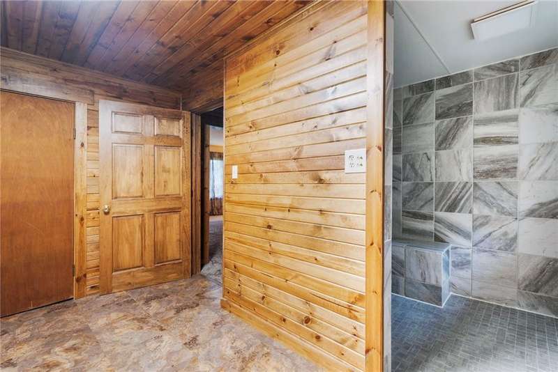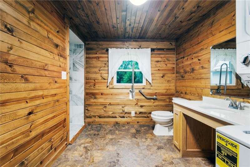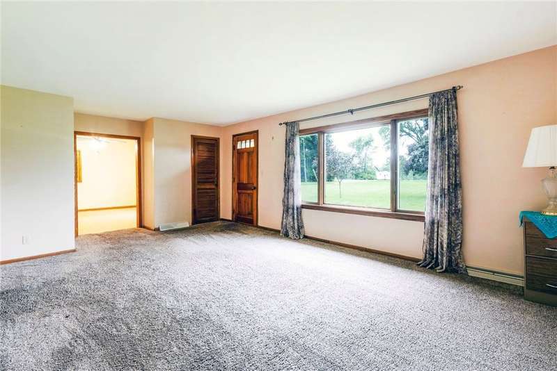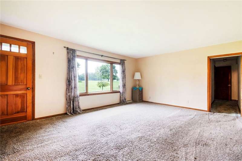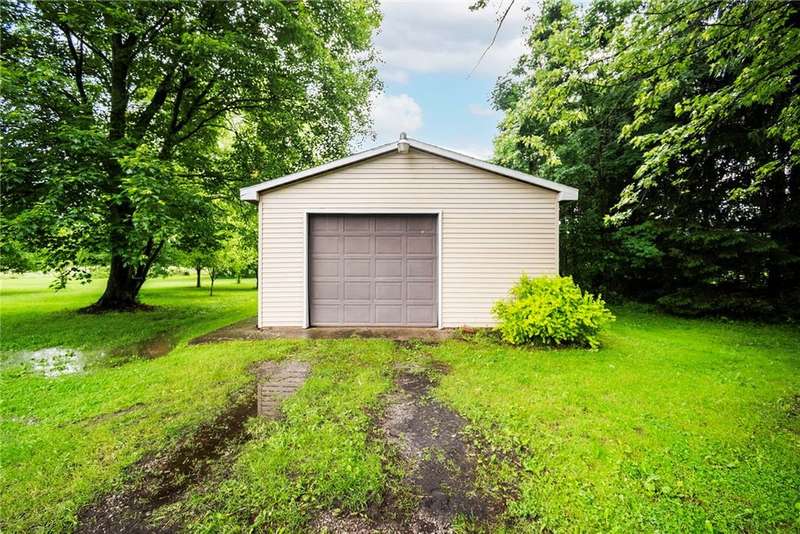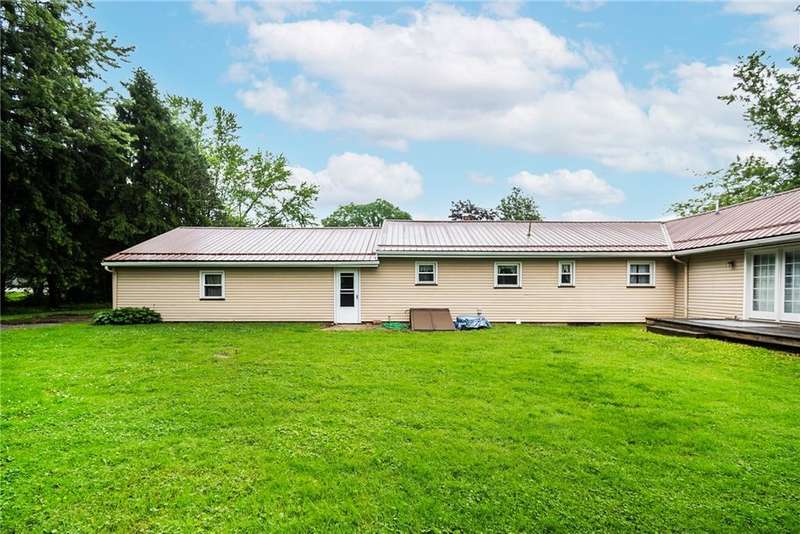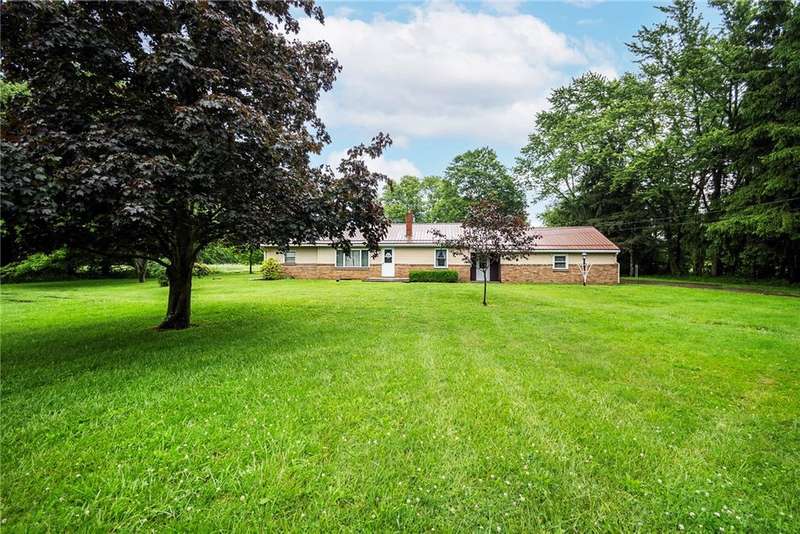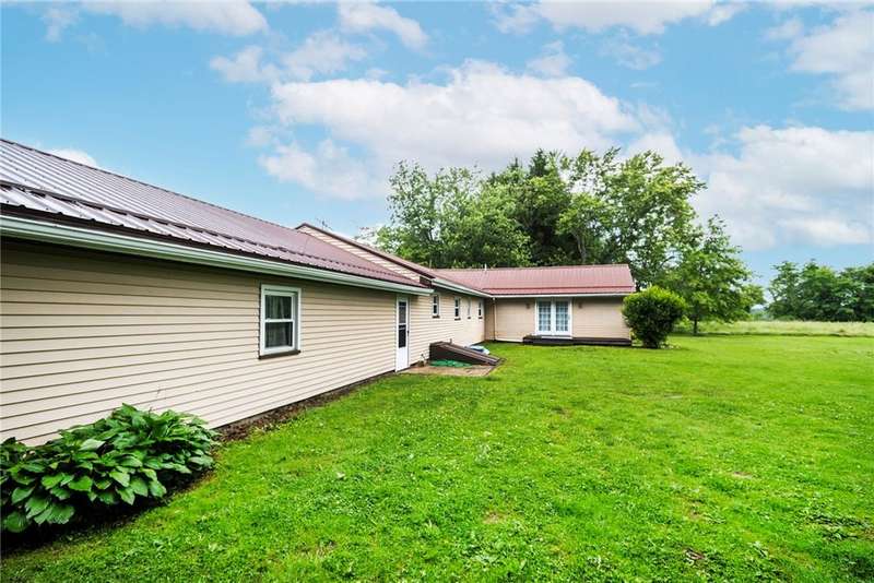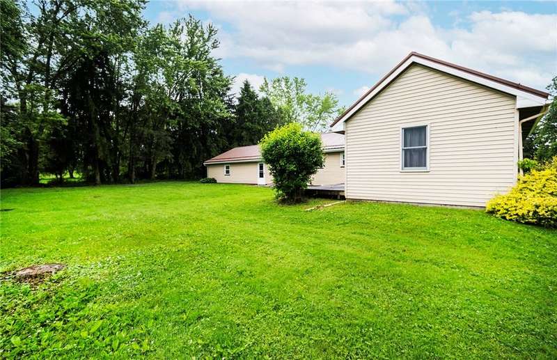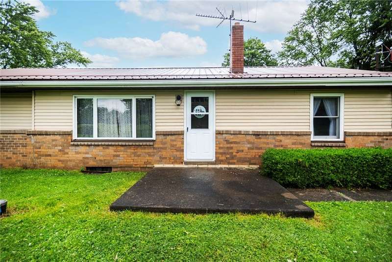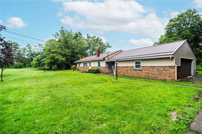 Tucked away from the road on a peaceful setting straddling the PA/OH line, this well-maintained brick and vinyl ranch is a true gem. The home showcases updates including a durable newer metal roof, updated windows, spacious, light-filled interiors and a professionally waterproofed basement, ready to finish! Step into a bright welcoming living room where a picture window and neutral carpeting create a warm, inviting ambiance. The oversized, fully equipped country kitchen is ideal for gatherings, featuring solid wood cabinetry, neutral countertops, and plenty of room to dine. A breezeway conveniently connects the kitchen to the attached 2-car garage. A private master suite is complete with a full bath and ample closet space. Patio doors lead out to a deck that overlooks a secluded backyard. A second full bath, wrapped in charming knotty pine, boasts a rustic touch with a large ceramic tile shower, handicap accessibility, and laundry hookups for convenience. Additional detached garage.