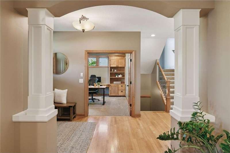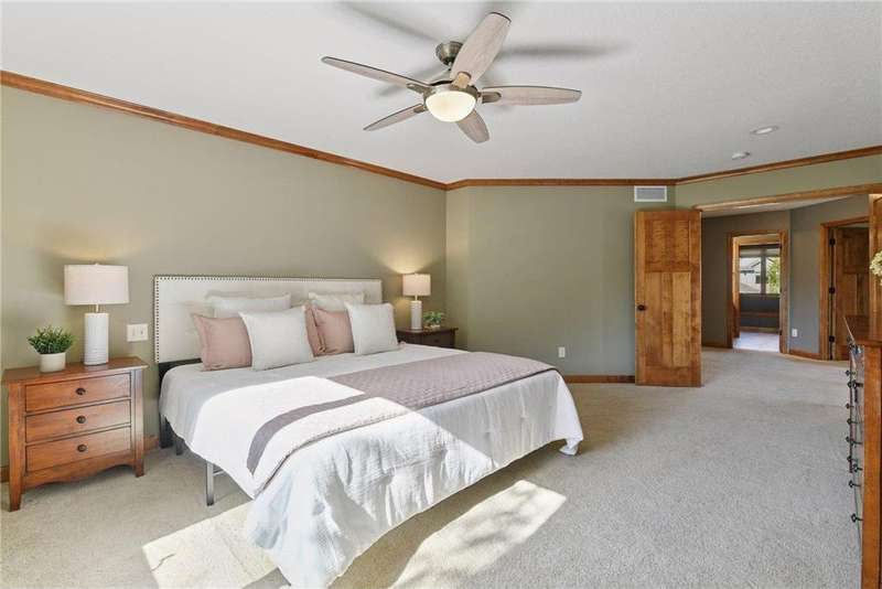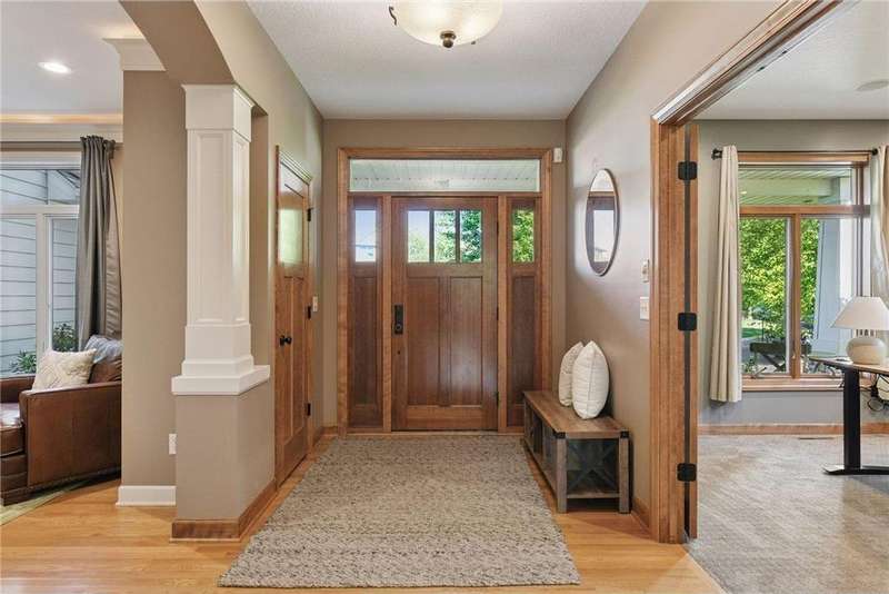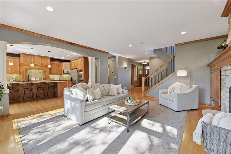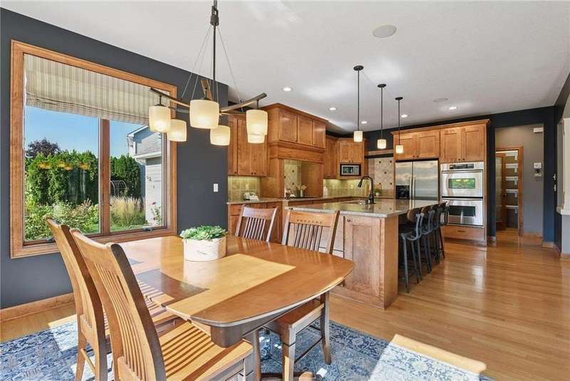 Look no further than this sprawling two-story offering in Bellavista. This custom home exceeds expectations with quality craftsmanship and thoughtful design by Kerber Homes. It neighbors the Chaska Town Course on nearly a half-acre lot with remarkable landscaping, fragrant gardens and towering trees. A spacious foyer invites you inside with five bedrooms and four bathrooms across 4,440 finished square feet. Gleaming hardwood floors carry into the family room with an inlay of plush carpeting. This space entertains with a floor-to-ceiling gas fireplace and incredible natural light. Impress any chef with a kitchen that boasts custom Maple cabinetry, stainless steel appliances with a double oven, a walk-in pantry and an enormous center island with granite countertops. The dining room walks out to a maintenance-free deck and a lower patio for further enjoyment. The main level is completed by a home office, front flex room, half bathroom and mudroom access to a tandem four-stall garage. There is a heated workshop with double doors that offer ultimate convenience to the backyard. The upper level presents two full bathrooms and four bedrooms, including the primary suite. This incredible retreat offers dual vanity sinks, heated tile floors and a separate shower and jetted tub. Head to the lower level to find more recreation space with another gas fireplace, a built-in playhouse and game area and a fifth bedroom with a ¾ bathroom with heated floors. Other notable features include abundant storage, a central vac system, all newer mechanicals and only a one-year-old roof. This is a dream home and property you don't want to miss!