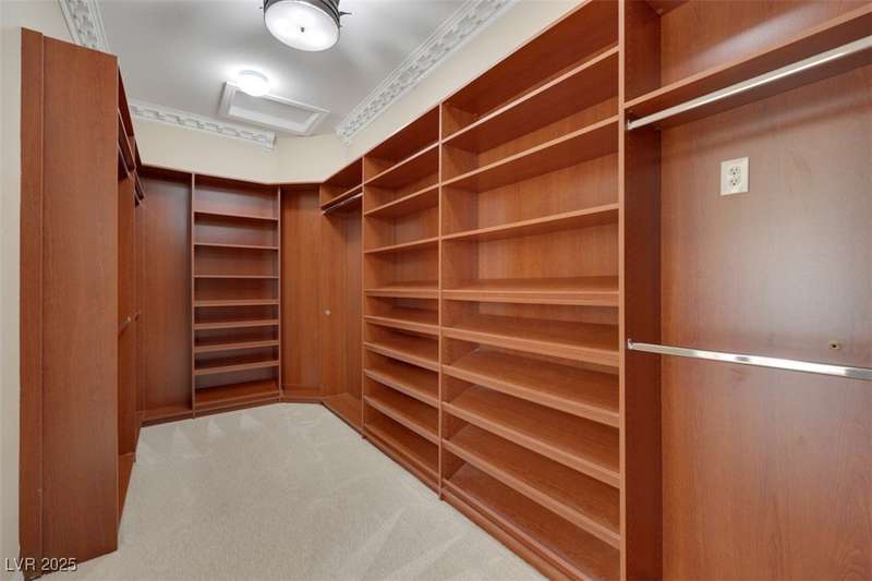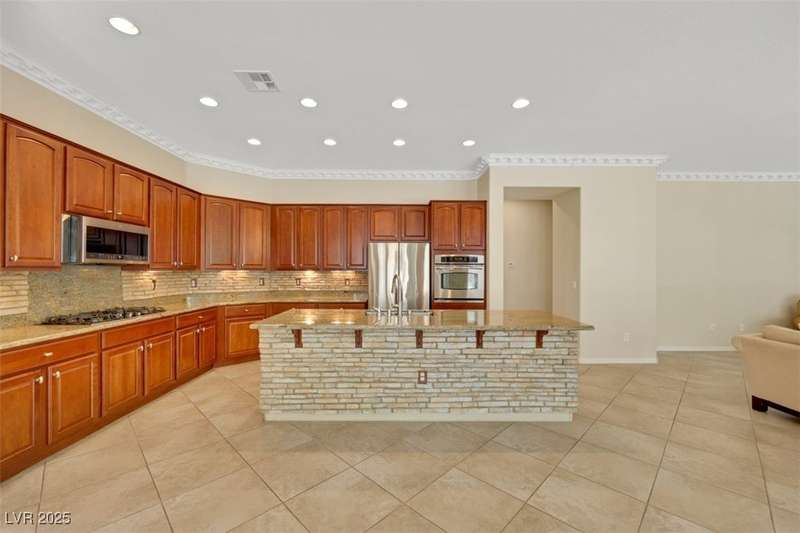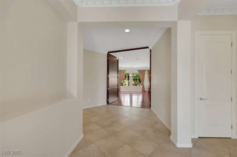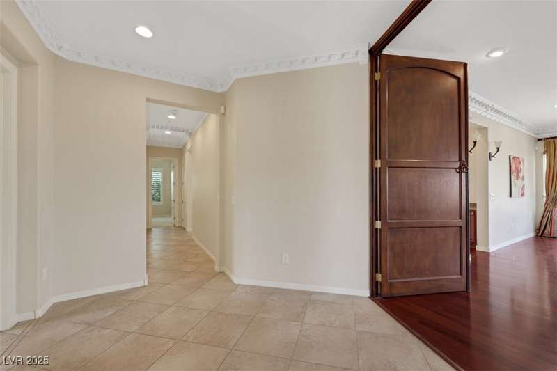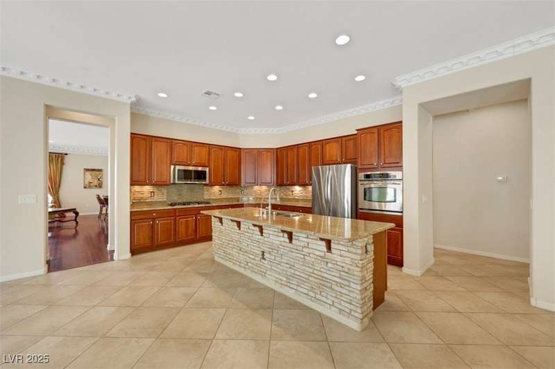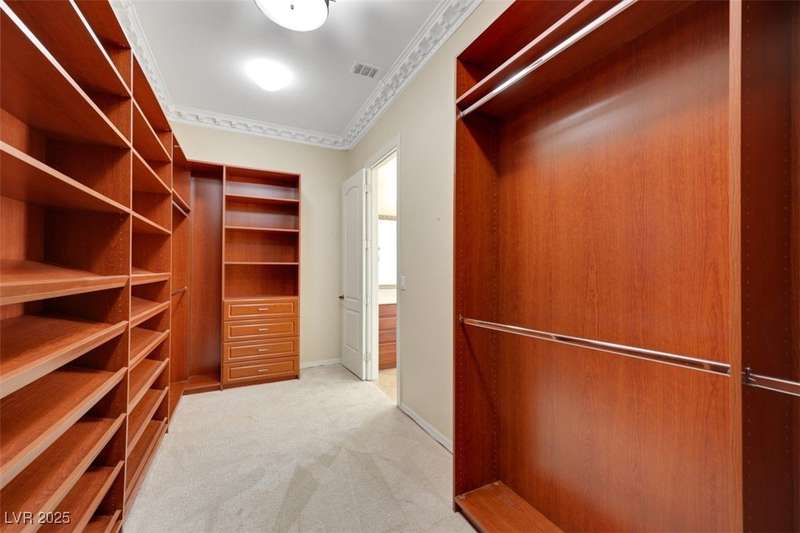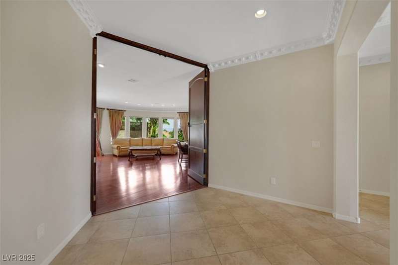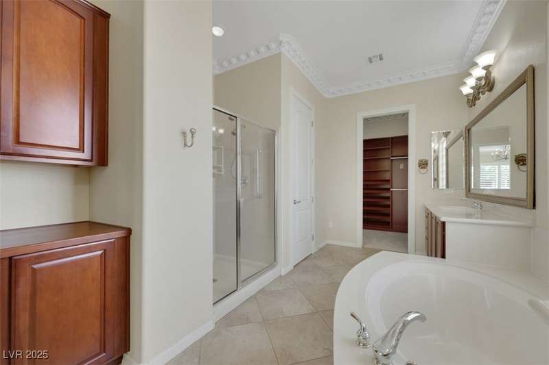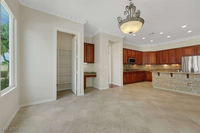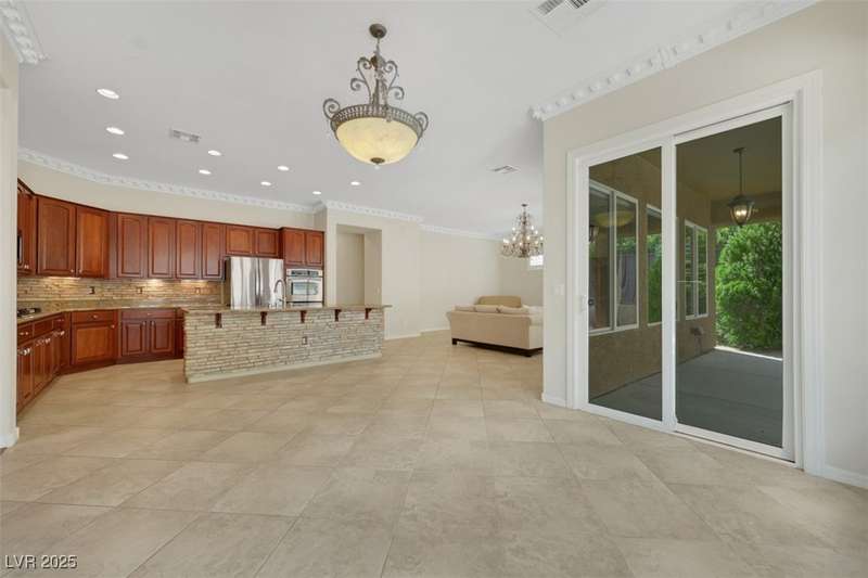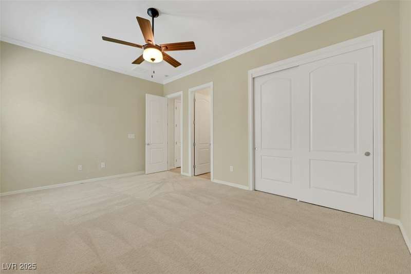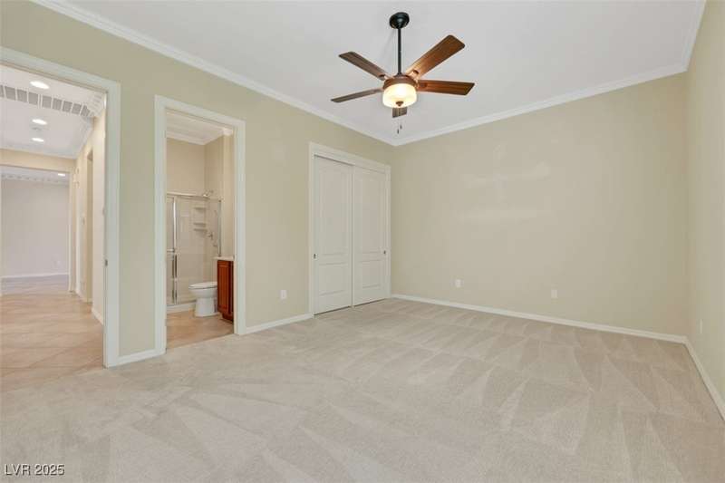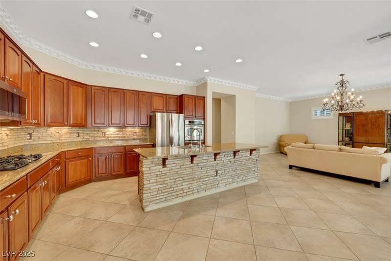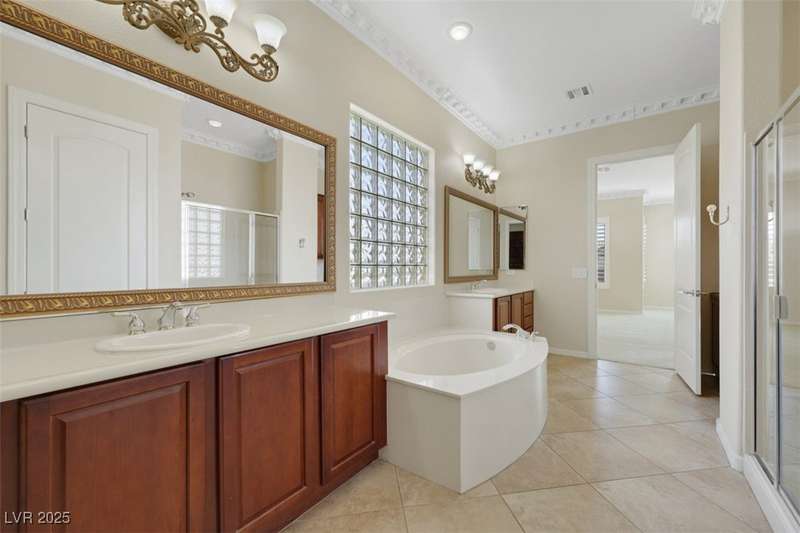 Stunning 2 Bd + Den, 2.5 Ba (3172 sq ft) Charleston model on a quiet interior street in the heart of Sun City Anthem (55+) just blocks away from both Community Centers. Perched on a 9000+ sq ft lot, this home has been beautifully maintained inside & out. Curb appeals starts w/turf & desert landscapes, new exterior paint, front courtyard w/Strip views, water feature, custom glass entry doors & iron security gate. Interior features lots of relaxation, entertainment & dining options w/many designer touches. 10 ft ceilings, custom wooden doors, new paint, built-in bookcases, lighted crown moulding, high-end window coverings, rock & tile backsplash kitchen features, upgraded light/plumbing/fan fixtures, custom closets, SS appliances, custom mirrors. 2nd bedroom has in-suite full bath. Large interior laundry room leads to large 3-car garage. Rear yard is peaceful, private & well shaded w/large patio areas & mature landscaping. Home is completely move-in ready & has low taxes & low HOA fees.