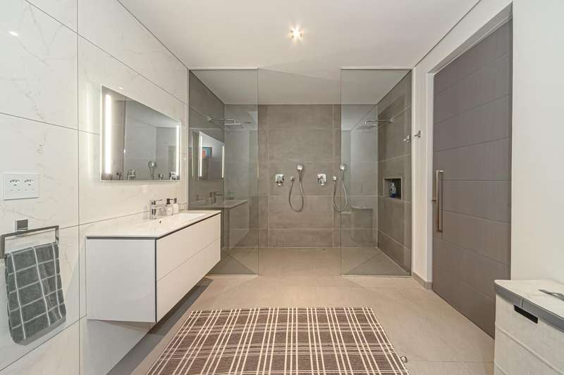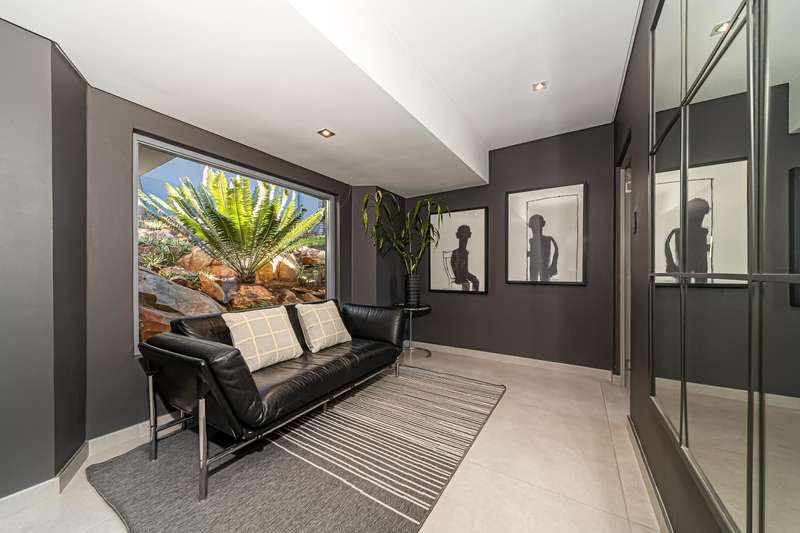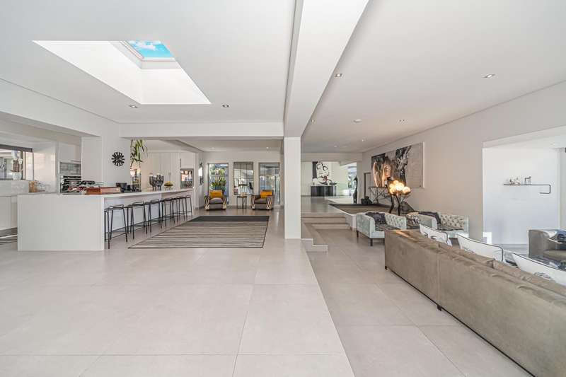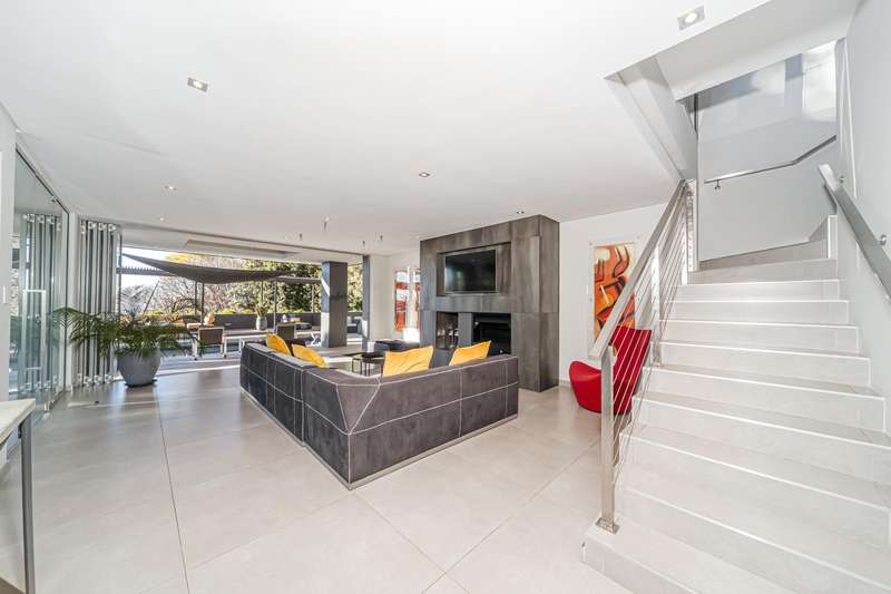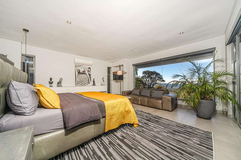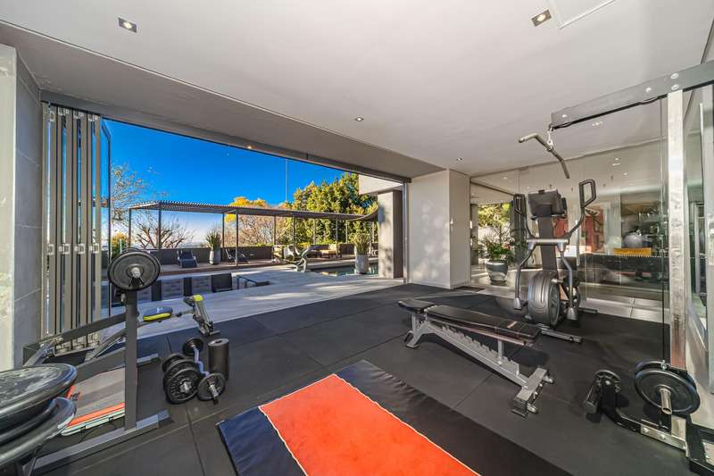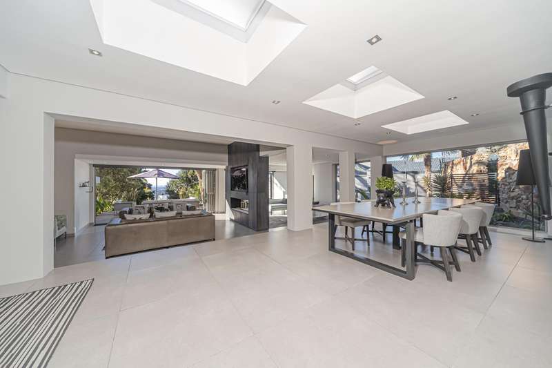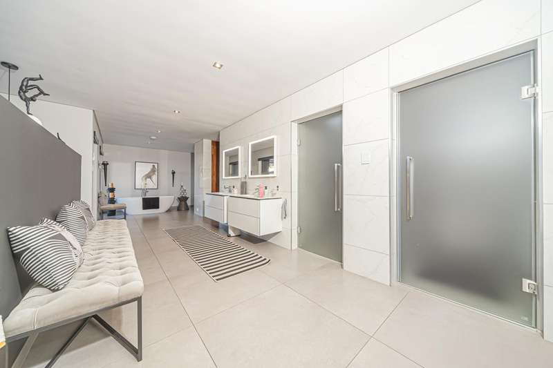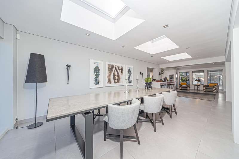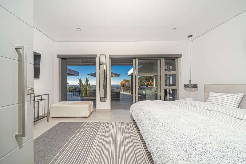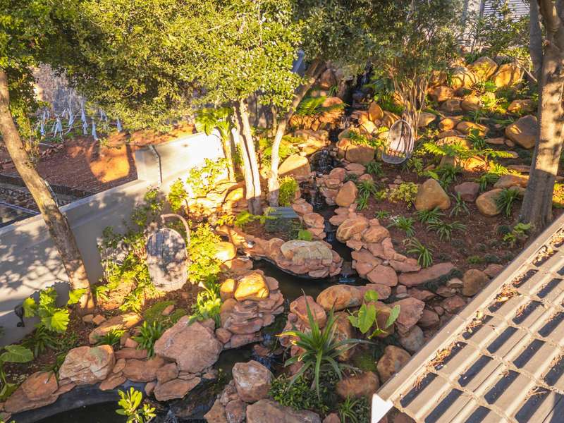 An architectural masterpiece that has 2 homes on the property with stunning sunsets and Magaliesburg mountain views This exquisite property nestled in the heart of Northcliff on Millionaires row offers an unparalleled blend of luxury and space. As you enter you are greeted by a grand entrance and an amazing water feature that was created by the owners from tons of large rocks that were brought in. The garden is surrounded by very large indigenous cycads many years old that lead you to this amazing property where you will find 2 modern homes for the extended family or run an Air B and B from the second home both with their own entrances on 2 separate streets. The home has a borehole with 2 tanks that supply 10 000 litres of water and never be without electricity from the 30 000 KW/hour generator that supplies both houses Features Main house has 4 bedrooms and 4 bathrooms The main bedroom is air conditioned with stunning views and access to the patio and entertainment area. A large walk in closet that houses the camera and security system and a bathroom with bath and shower Second bedroom - Access to entertainment deck en suite bathroom with shower Third bedroom leads from entertainment area with a full bathroom and a private balcony 4th bedroom can be utilized as a study or bedroom as it has a full bathroom as this wonderful home has ample space for another study Bedrooms are tiled and have automatic blinds Kitchen is open plan with lots of workspace on Caesarstone tops, 2 wine coolers and space for a large double door fridge. Top of the range appliances and a large island for extra workspace leading to an open plan lounge and Dining room with fi replaces for warm cozy evenings This home has exquisite light fittings and underfloor heating Large sliding doors that stack completely open and allow for expansive indoor/outdoor entertaining The top deck opens to a built in braai for easy entertaining from the Kitchen and living rooms Sip cocktails from the extensive patio as you look out at the most amazing views of the setting sun and the Magaliesburg mountain. This is a one of a kind home and lends itself to indulge and relax next to the heated pool and Jacuzzi. The second home is a 2 bedroom 2 bathroom home with guest cloakroom. There is a large open plan lounge and modern kitchen and has its own entertainment area. This magnificent property with 2 homes is designed for the discerning family who want to be totally spoilt OFFERS FROM R17M