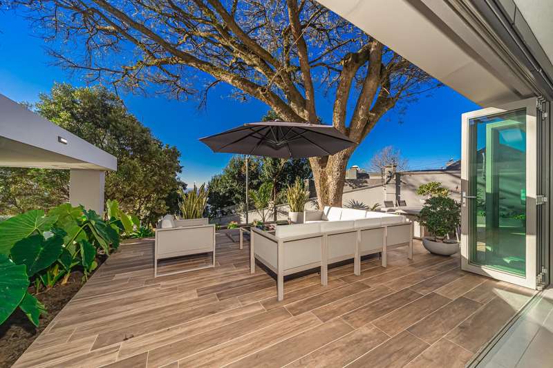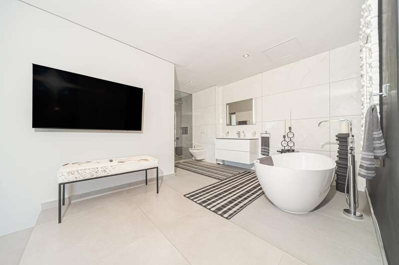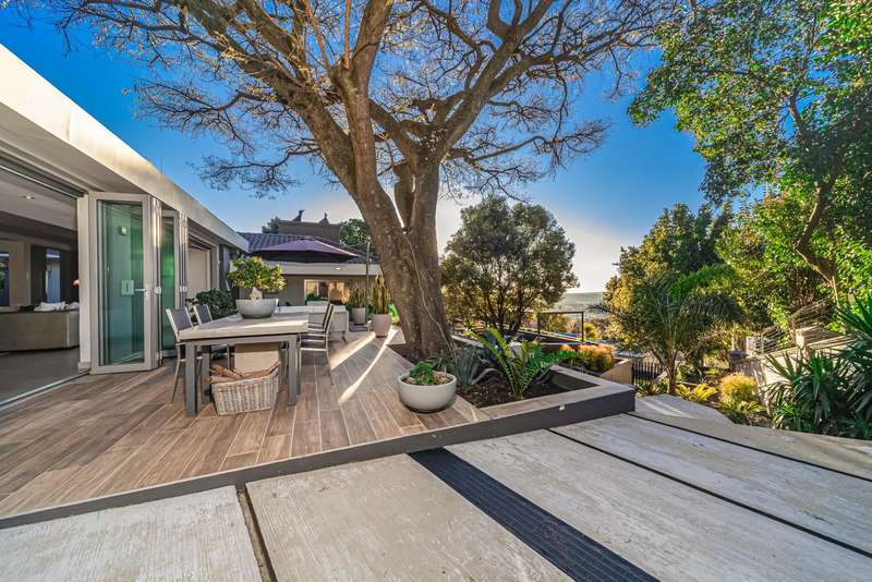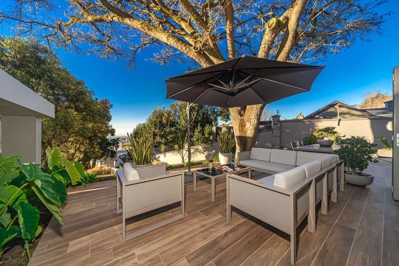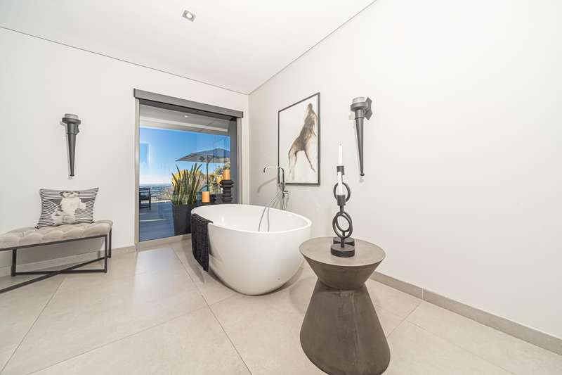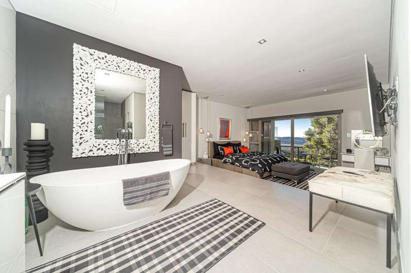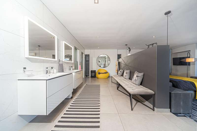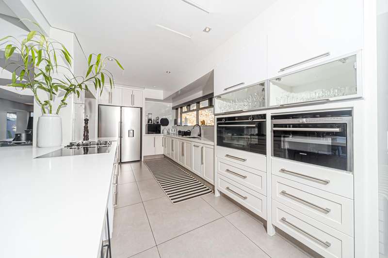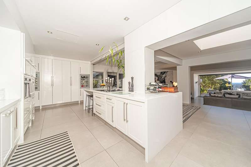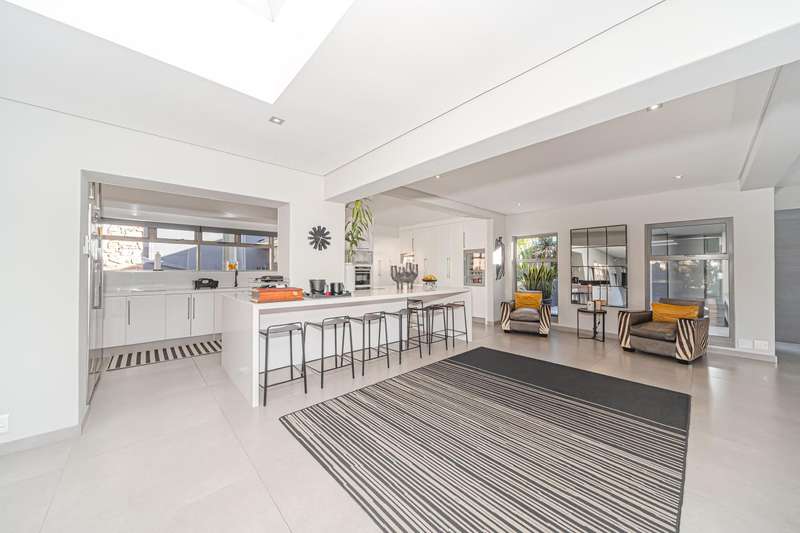 An architectural masterpiece that has 2 homes on the property with stunning sunsets and Magaliesburg mountain views This exquisite property nestled in the heart of Northcliff on Millionaires row offers an unparalleled blend of luxury and space. As you enter you are greeted by a grand entrance and an amazing water feature that was created by the owners from tons of large rocks that were brought in. The garden is surrounded by very large indigenous cycads many years old that lead you to this amazing property where you will find 2 modern homes for the extended family or run an Air B and B from the second home both with their own entrances on 2 separate streets. The home has a borehole with 2 tanks that supply 10 000 litres of water and never be without electricity from the 30 000 KW/hour generator that supplies both houses Features Main house has 4 bedrooms and 4 bathrooms The main bedroom is air conditioned with stunning views and access to the patio and entertainment area. A large walk in closet that houses the camera and security system and a bathroom with bath and shower Second bedroom - Access to entertainment deck en suite bathroom with shower Third bedroom leads from entertainment area with a full bathroom and a private balcony 4th bedroom can be utilized as a study or bedroom as it has a full bathroom as this wonderful home has ample space for another study Bedrooms are tiled and have automatic blinds Kitchen is open plan with lots of workspace on Caesarstone tops, 2 wine coolers and space for a large double door fridge. Top of the range appliances and a large island for extra workspace leading to an open plan lounge and Dining room with fi replaces for warm cozy evenings This home has exquisite light fittings and underfloor heating Large sliding doors that stack completely open and allow for expansive indoor/outdoor entertaining The top deck opens to a built in braai for easy entertaining from the Kitchen and living rooms Sip cocktails from the extensive patio as you look out at the most amazing views of the setting sun and the Magaliesburg mountain. This is a one of a kind home and lends itself to indulge and relax next to the heated pool and Jacuzzi. The second home is a 2 bedroom 2 bathroom home with guest cloakroom. There is a large open plan lounge and modern kitchen and has its own entertainment area. This magnificent property with 2 homes is designed for the discerning family who want to be totally spoilt OFFERS FROM R17M